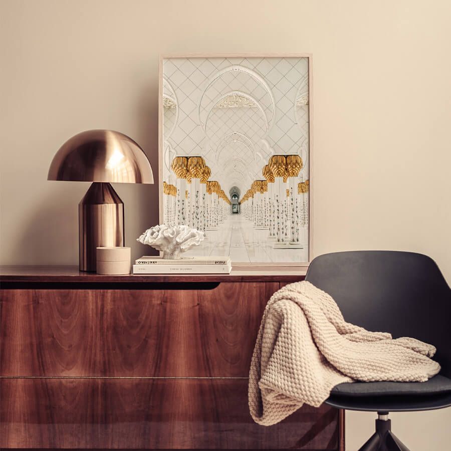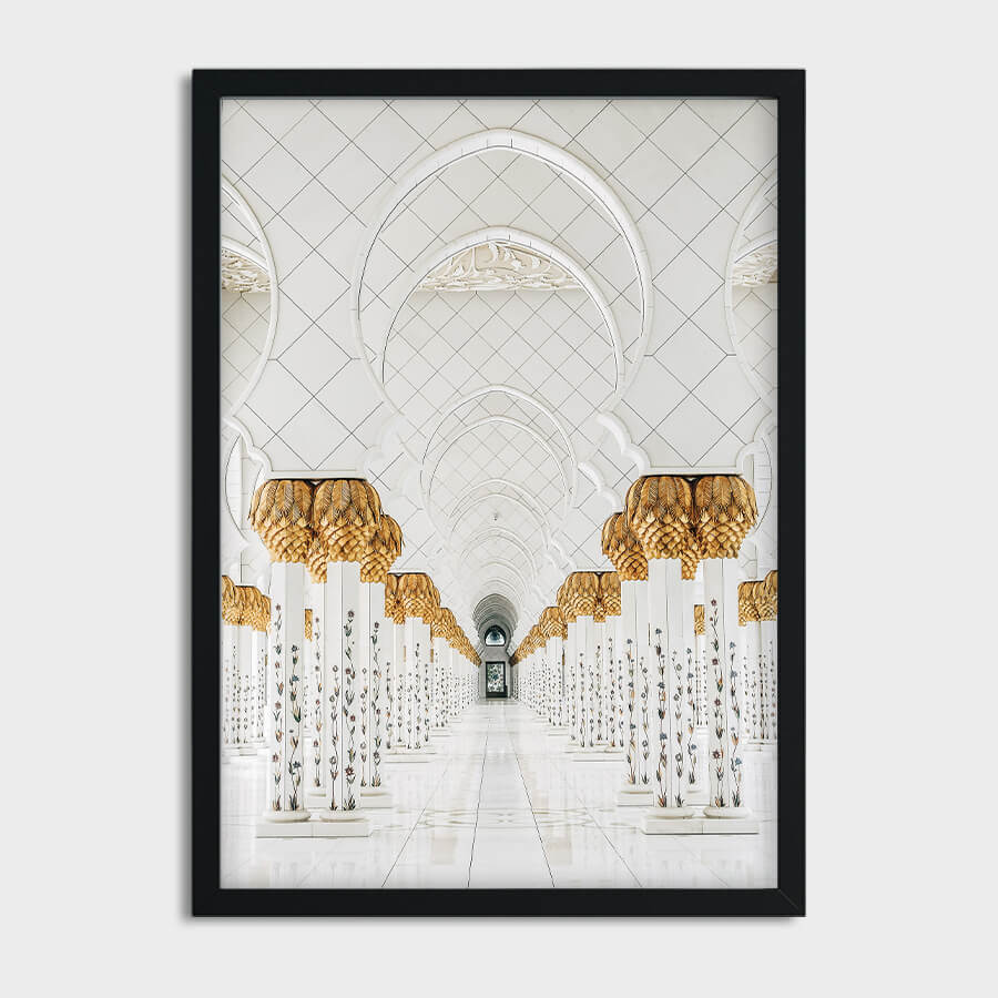 Der Abu Dhabi Arcades Poster vereint die zeitlose Eleganz der Architektur mit der berauschenden Atmosphäre der Hauptstadt der Vereinigten Arabischen Emirate. Hier verschmelzen modernistische Strukturen mit traditionellem arabischen Design, um eine visuelle Symphonie aus Licht und Schatten zu schaffen, die den Betrachter in ihren Bann zieht.