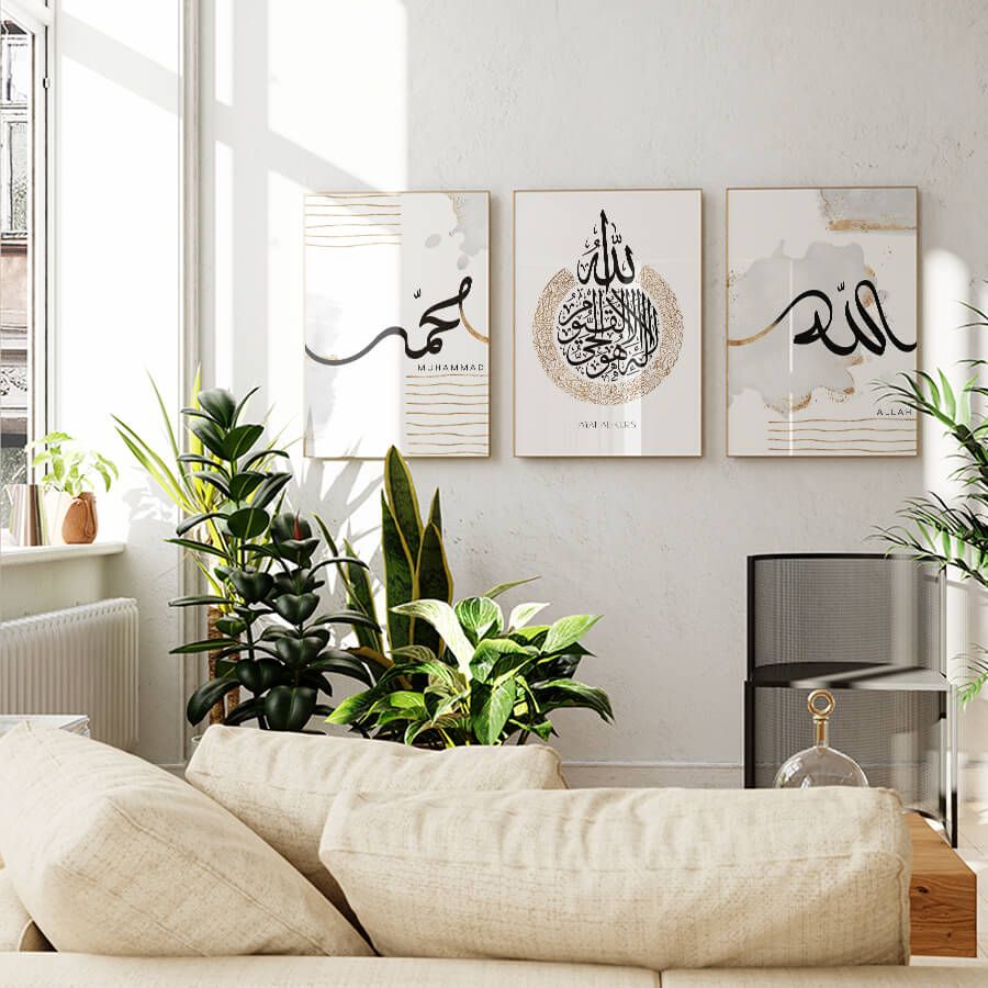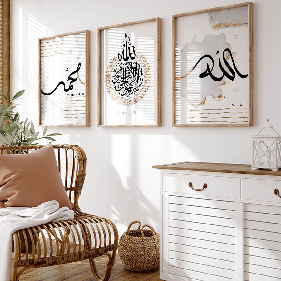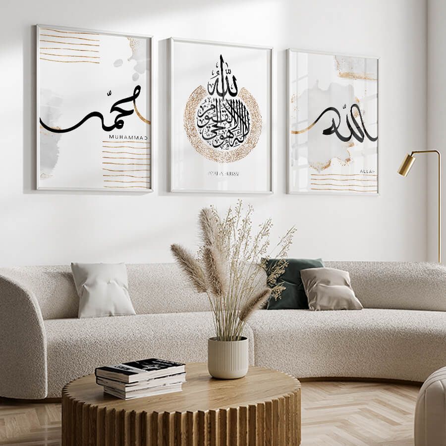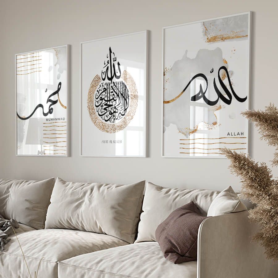 Entdecken Sie mit dem Allah, Muhammad, Ayat Al Kursi Poster Set eine harmonische Verbindung von Kunst und Spiritualität. Jedes Poster in dieser exquisiten Kollektion ist ein Ausdruck von kulturellem Reichtum und tiefem Glauben, perfekt für designbewusste Kunden, die nicht nur dekorative Elemente, sondern auch bedeutungsvolle Kunstwerke in ihr Zuhause integrieren möchten.