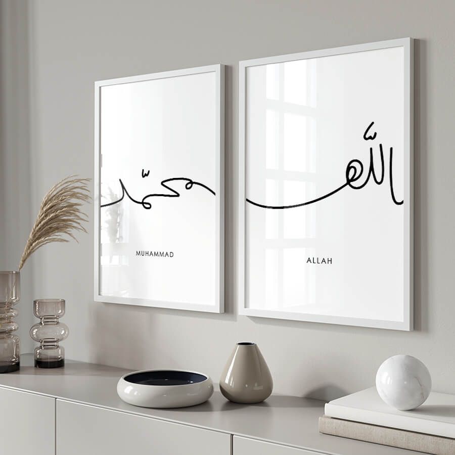 Diese Kombination aus Allah und Muhammad verkörpert die Einheit der Religion und die Bedeutung der Hingabe in der islamischen Kultur. Unsere Arabic Calligraphy Poster sind nicht nur Dekoration, sondern wertvoller Ausdruck Ihres Glaubens und Ihrer Werte und eigens für designbewusste Kunden kuratiert.