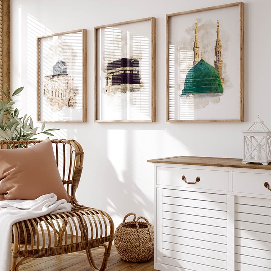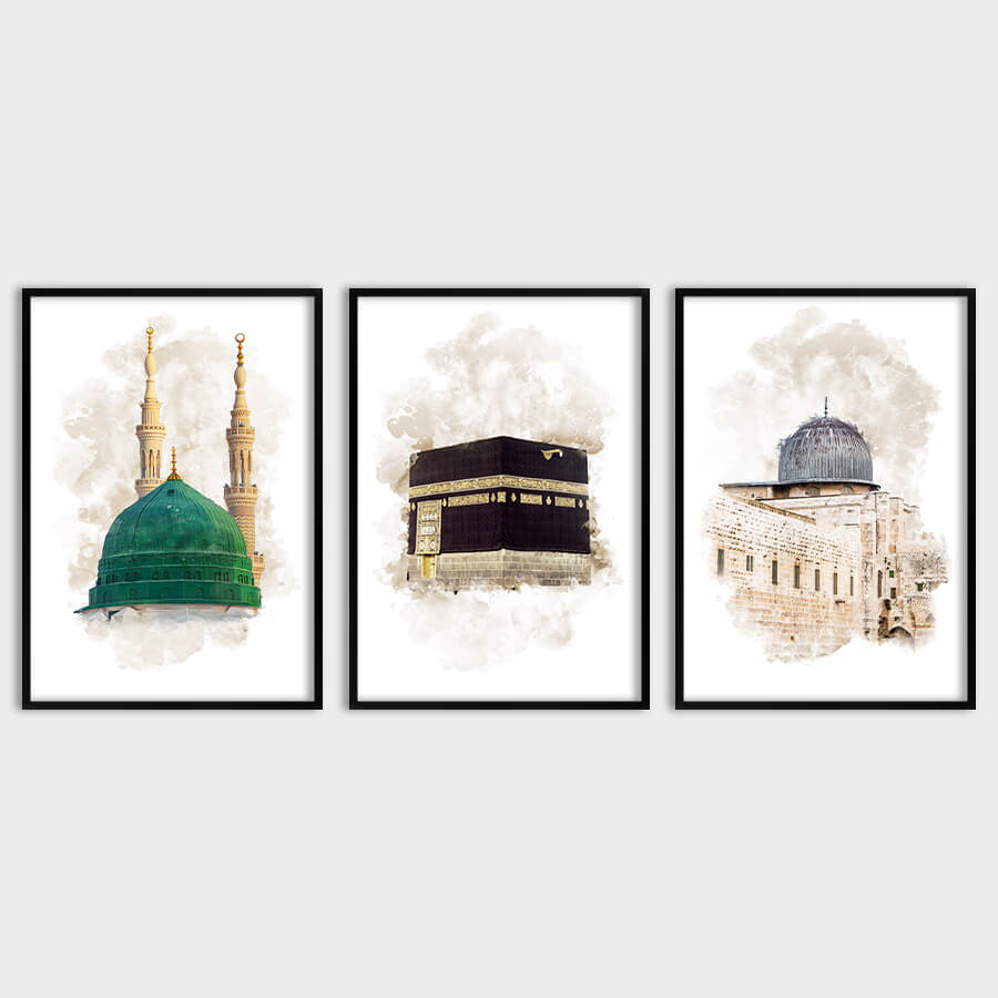 Aqsa, Kaaba, Nabawi Watercolor Poster Set