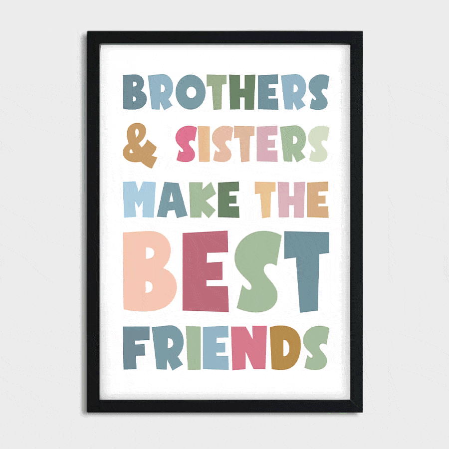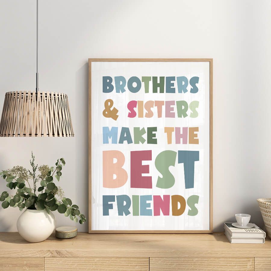 Unsere Produkte werden mit Liebe zum Detail und in hochwertiger Qualität gefertigt. Das Brother, Sister Poster ist ein zeitloses Kunstwerk, das Generationen überdauern wird – ideal für all jene, die das Besondere wertschätzen und personalisierte Wandkunst ins Herz ihrer Räume integrieren möchten.
