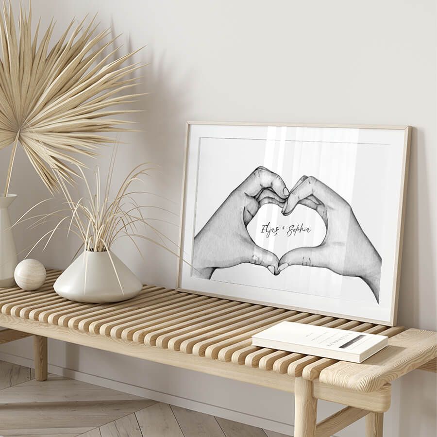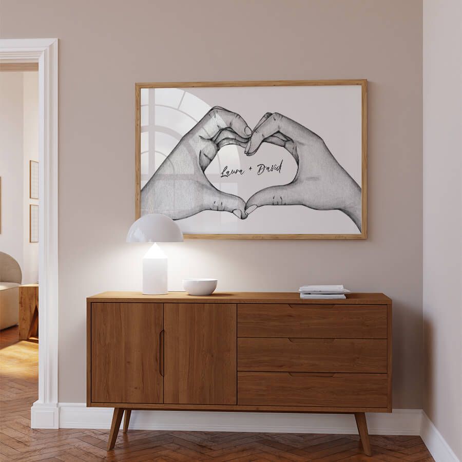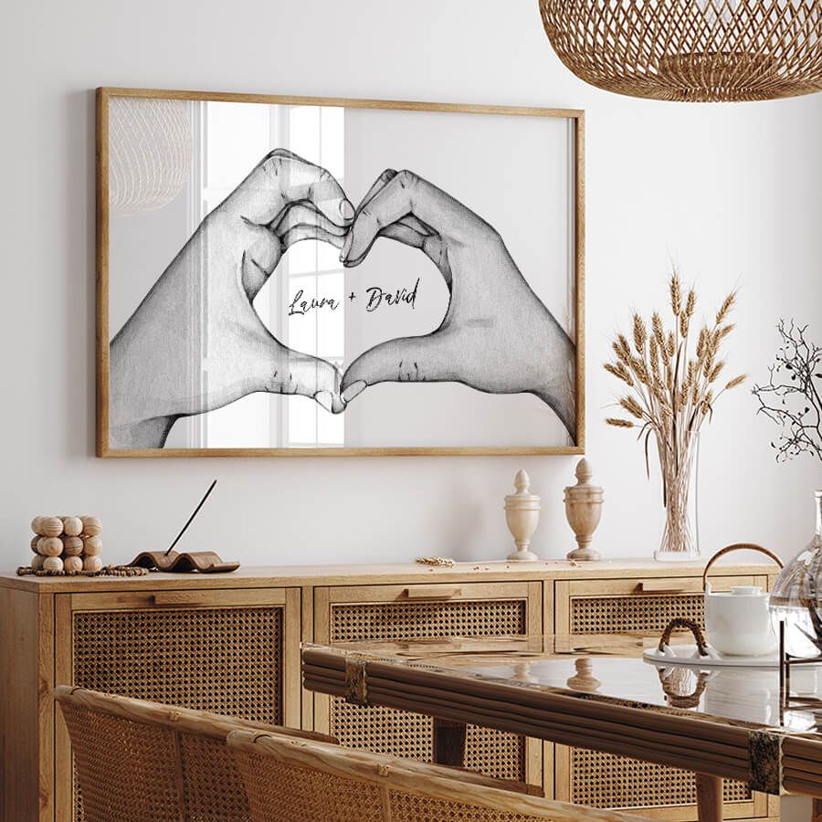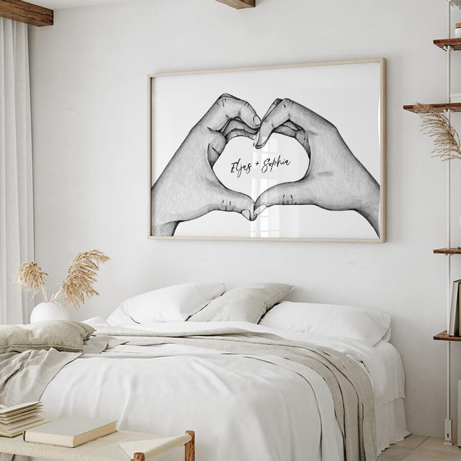 Machen Sie Ihre Wände zu einer Galerie Ihrer Emotionen und zeigen Sie liebevoll, was Ihnen am Herzen liegt. Lassen Sie Ihre Namen Kunst werden und schaffen Sie ein zeitloses Erinnerungsstück, das auch in Zukunft seine Bedeutung behält.