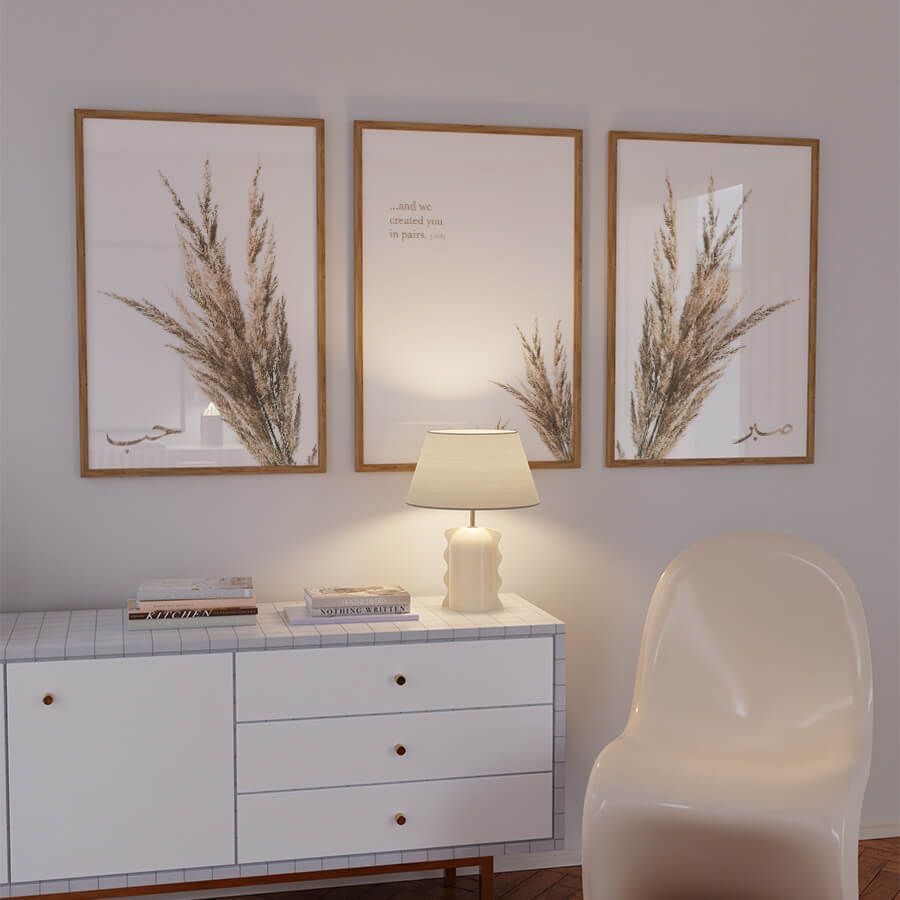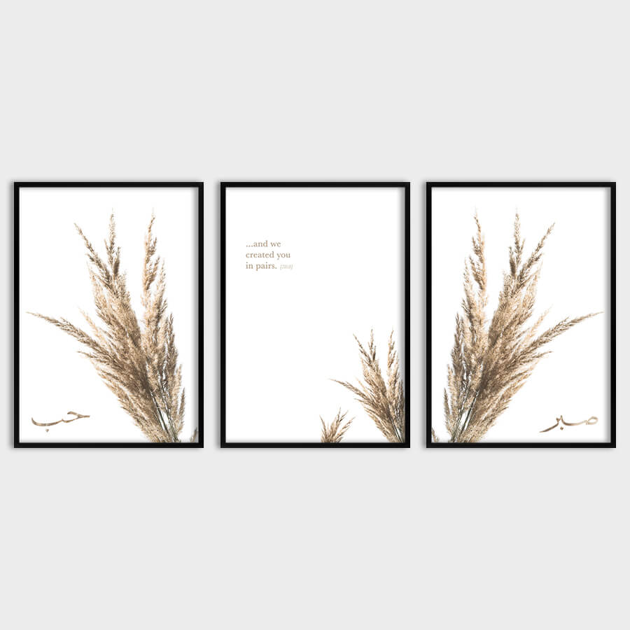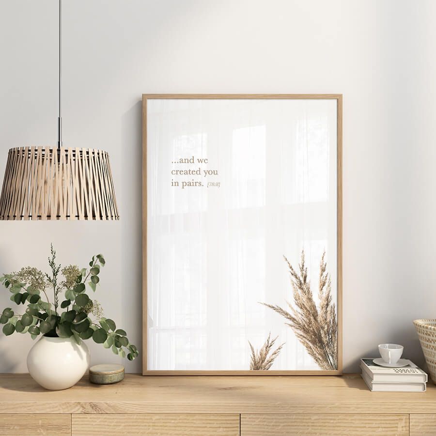 Begrüßen Sie eine harmonische Fusion aus Kunst und Glauben mit unserem exklusiven Poster-Set „Created in Pairs 78:8 [صبر] [حب]“ von at9pm. Dieses Set voller einer tiefen emotionalen Resonanz und subtiler Schönheit wird sorgfältig für designbewusste Kunden kuratiert, die das Besondere in ihrer Umgebung schätzen.