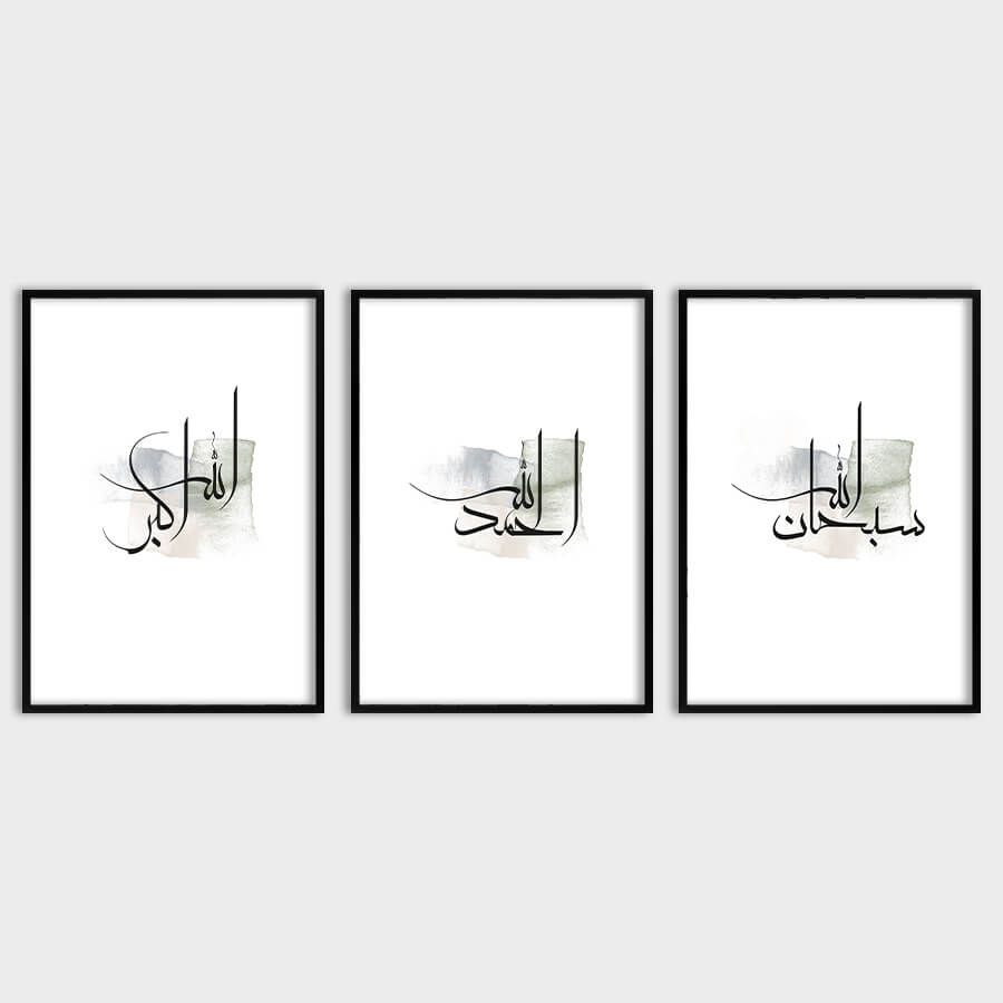 Dhikr Calligraphy, Subhanallah Alhamdulillah Allahu Akbar Poster Set