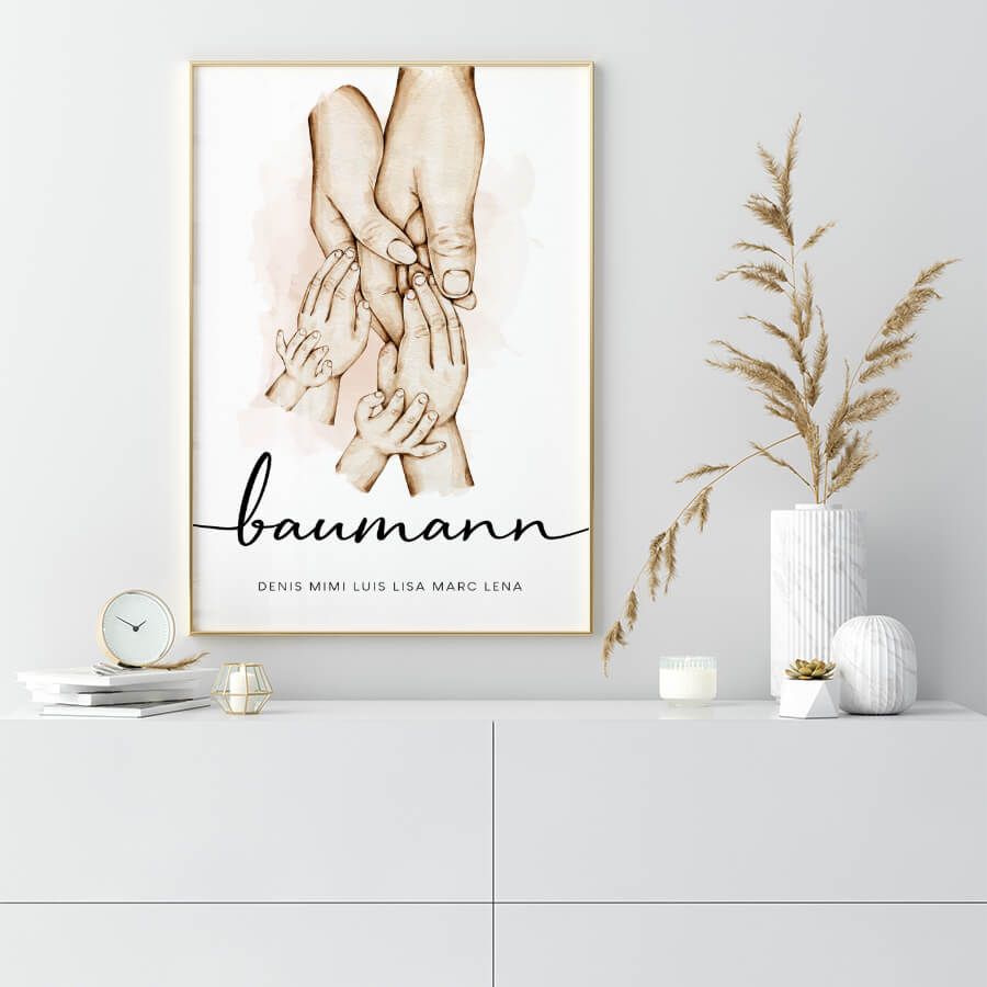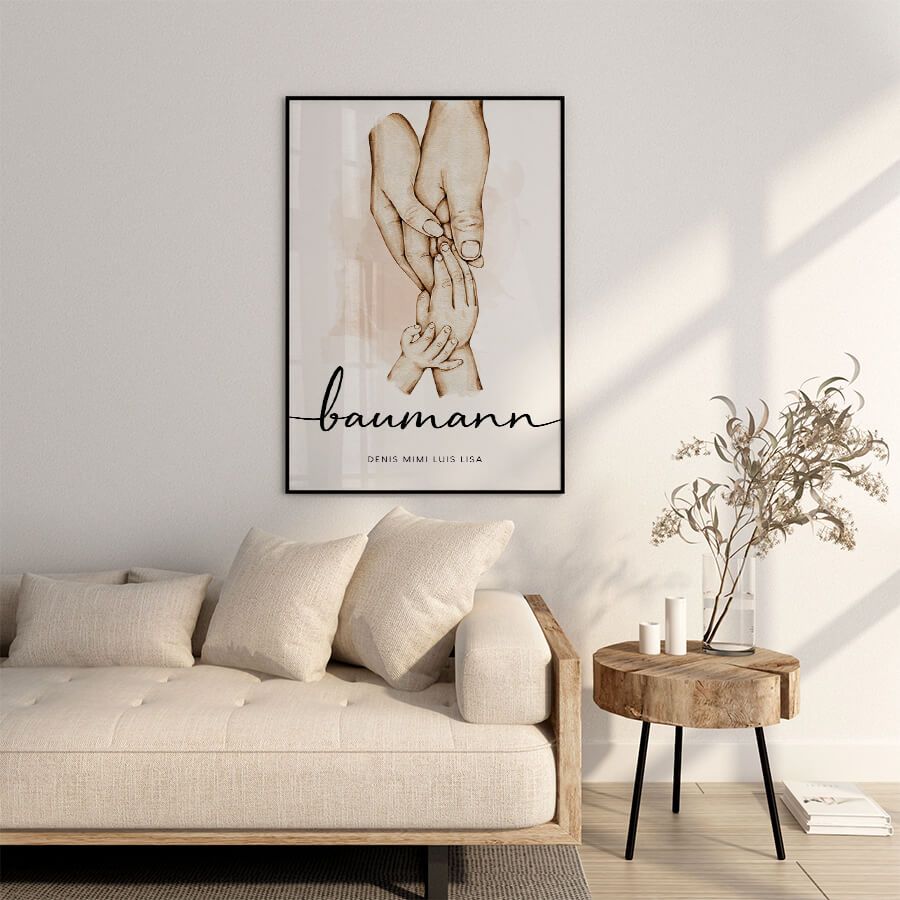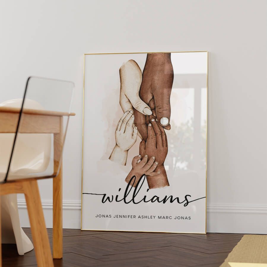 Mit unseren personalisierten Familienpostern von at9pm schaffen Sie ein einzigartiges Kunstwerk, das Ihre Geschichte erzählt. Jedes Poster wird individuell gestaltet und spiegelt die besonderen Momente wider, die Ihr Zuhause prägen. Namen und bedeutende Daten werden zu einem eleganten Design, das nicht nur dekorativ ist, sondern auch emotionale Verbundenheit und familiäre Wurzeln verkörpert.