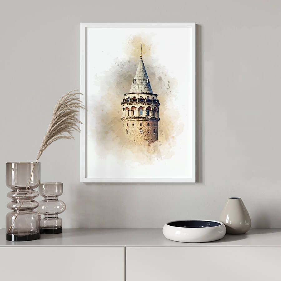Erleben Sie die zeitlose Schönheit des Galataturms in Istanbul, eingefangen in einem exquisiten Wasserfarben-Poster, das Architektur und Atmosphäre harmonisch verbindet. Diese beeindruckende Wandkunst ist nicht nur ein Blickfang, sondern auch ein Ausdruck von Eleganz und Stil, der jedes Interieur veredelt.
