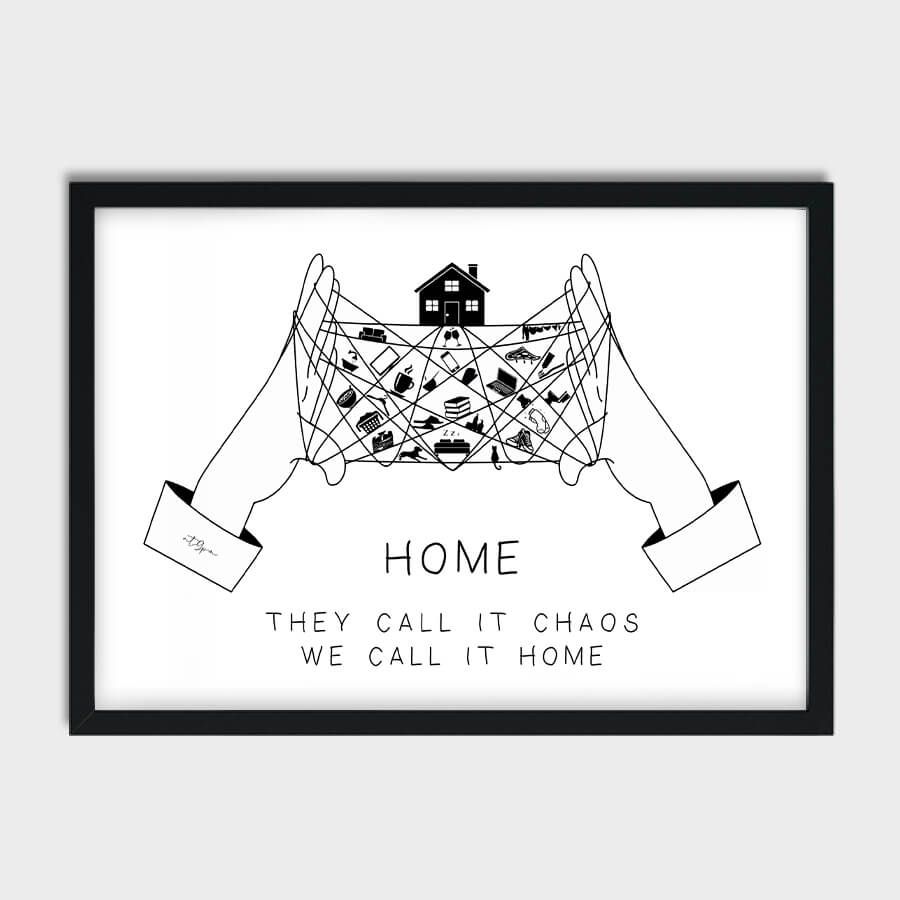 In einer Welt voller Hektik und Unruhe ist dieser typografische Poster ein beruhigendes Manifest der Identität und Zugehörigkeit. Der Satz „Thay Call It Chaos We Call It Home“ erweckt eine tiefe Emotion und spricht auf sanfte Weise zu den Seelen derer, die in der Stille finden, was das Heim für sie wirklich bedeutet.