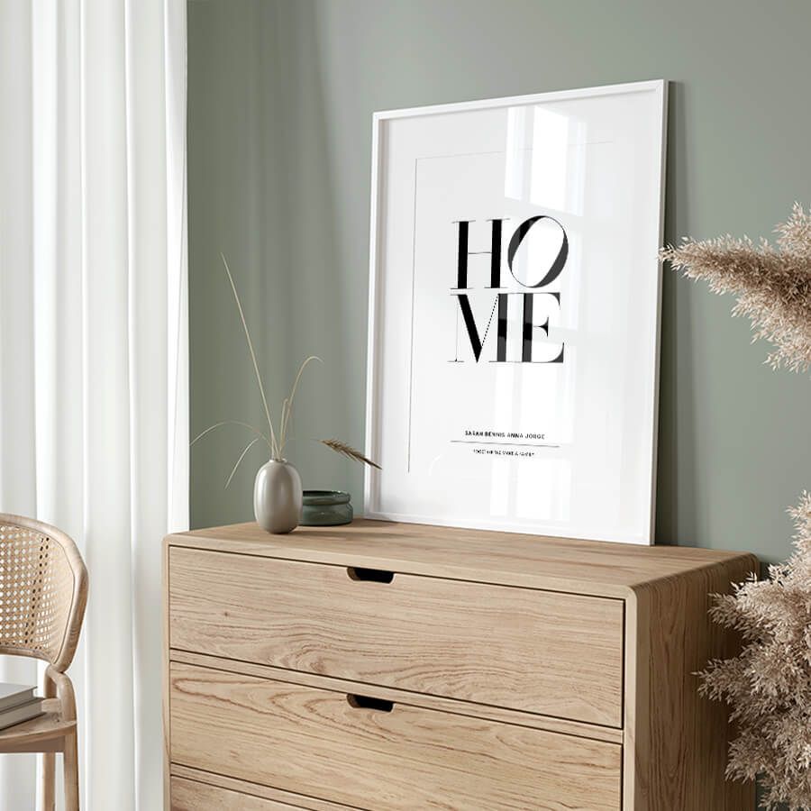 Das at9pm Home Poster, Personal verkörpert eine raffinierte Ästhetik, die minimalistische Typografie mit erstklassiger Materialität vereint. Die klaren Linien und das moderne Layout ziehen das Auge an und fügen sich nahtlos in zeitgenössische Wohnkonzepte ein. Die Verwendung von sanften Farbtönen und elegantem Schriftbild bietet eine harmonische Balance, die sowohl in einem stilvollen Wohnzimmer als auch in einem gemütlichen Schlafzimmer zur Geltung kommt.