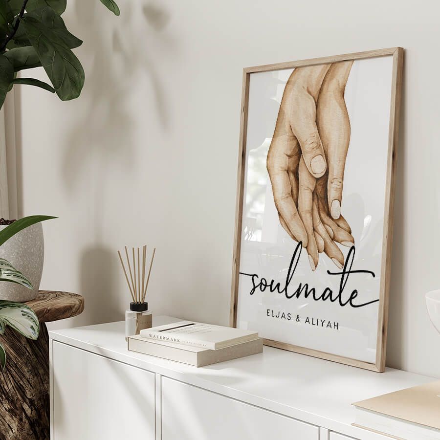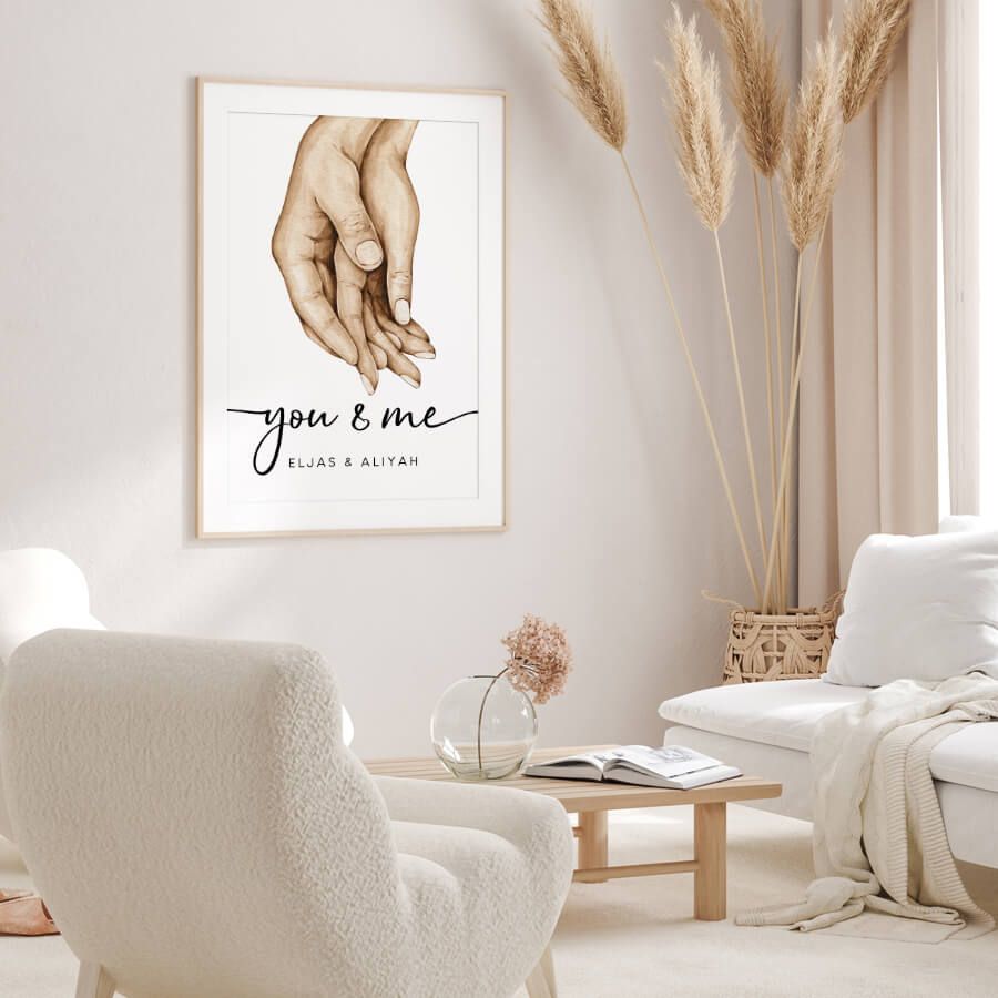 Ob als liebevolle Hommage an eine Partnerschaft, die unvergessliche Augenblicke Ihrer Familie oder einfach als Feier Ihres ganz besonderen Selbst – dieses Kunstwerk fügt sich harmonisch in jeden Raum ein. Die eleganten Typografien dieses Posters fangen das Wesentliche ein: die Namen, die Ihnen am Herzen liegen, werden zu einem kunstvollen Blickfang an Ihrer Wand.