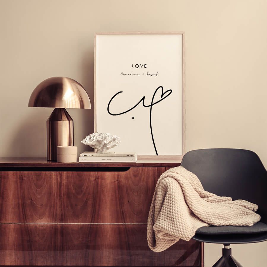 Erleben Sie die subtile Eleganz unserer personalisierten Typografie-Poster von at9pm. Das Love [حب] Poster verkörpert ein modernes, minimalistisches Design, das durch klare Linien und stilvolle Schriftzüge besticht. Die raffinierte Typografie wird harmonisch durch eine zeitlose Anordnung unterstützt, die sich nahtlos in jedes moderne Interieur einfügt und einen Hauch von Individualität verleiht.