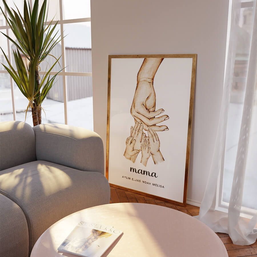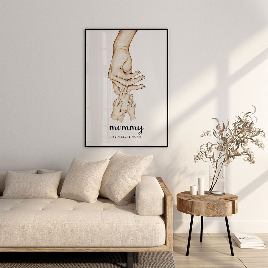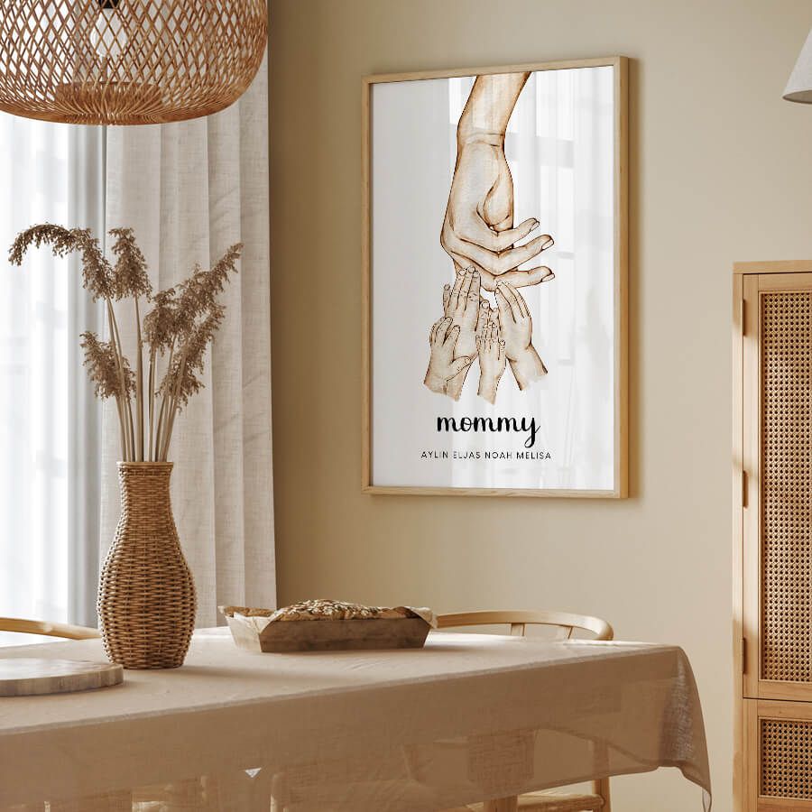 Feiern Sie die Schönheit der individuellen Verbindung mit unserem personalisierten Mama Poster von at9pm. Dieses kunstvoll gestaltete Poster verwandelt Namen in ein zeitloses Kunstwerk und erzählt Ihre persönliche Geschichte. Jedes Detail ist darauf ausgelegt, die Essenz Ihrer Familie einzufangen und einen bleibenden Eindruck zu hinterlassen.