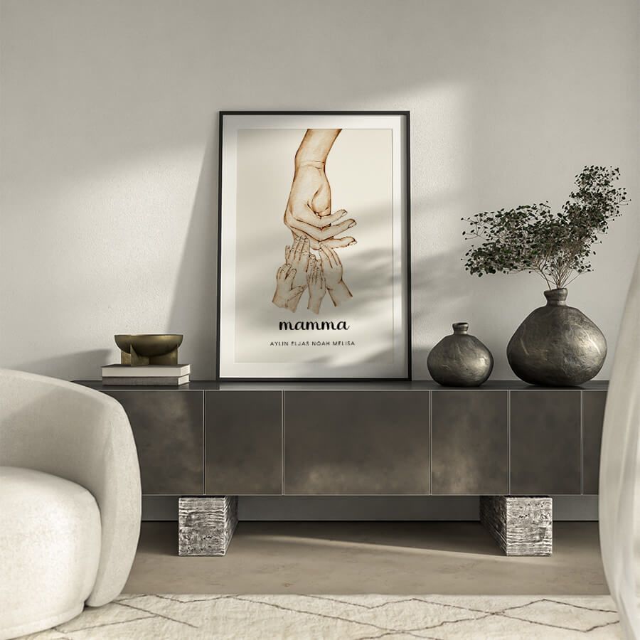 Durch die Möglichkeit, individuelle Namen, Daten oder persönliche Texte hinzuzufügen, schaffen Sie ein einzigartiges Stück, das Ihre Wurzeln und Zusammengehörigkeit feiert. Ob als Ausdruck Ihrer Verbundenheit als Familie oder als tiefere Hommage an die besondere Rolle, die eine Mutter im Leben spielt — jedes Poster wird mit Liebe und Sorgfalt gestaltet, um die wichtigsten Momente Ihres Lebens zu rahmen.
