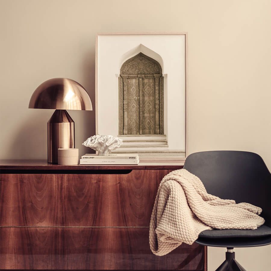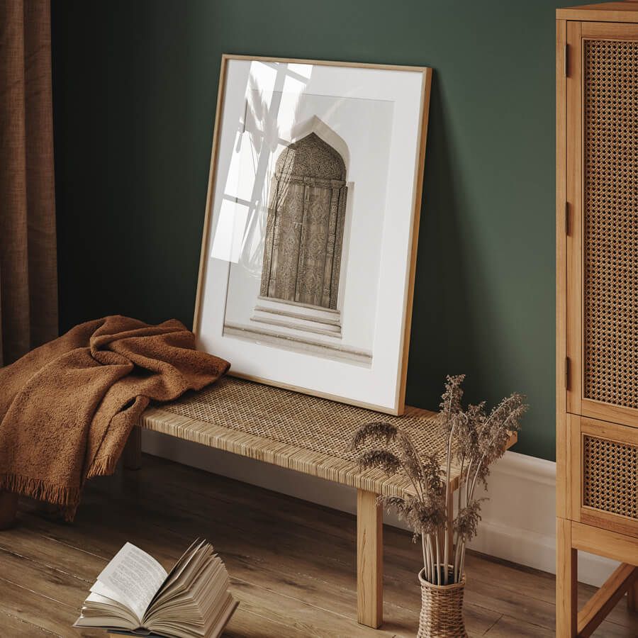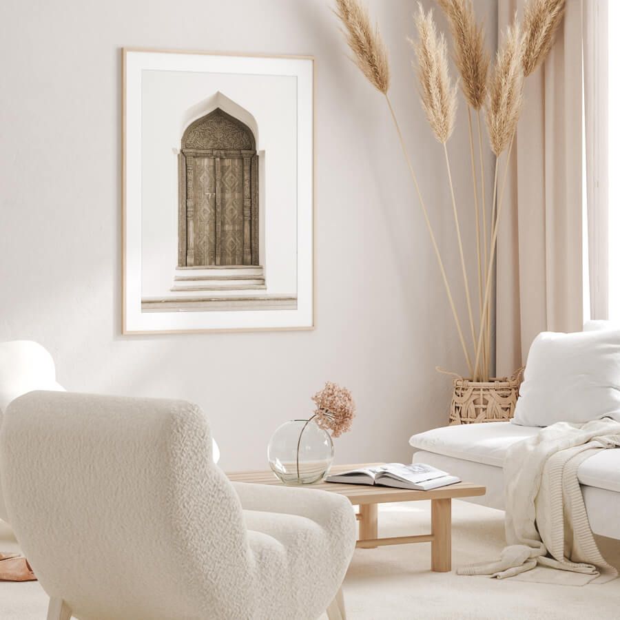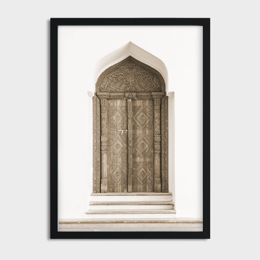 Die Tür, kunstvoll gestaltet und von filigranen Mustern umgeben, ist ein Symbol für die Raffinesse und das Erbe der orientalischen Baukunst. Die harmonischen Proportionen und der faszinierende Detailreichtum dieser Fotografie schaffen eine Atmosphäre, die sowohl modern als auch authentisch wirkt. Ideal für das Wohnzimmer, den Flur oder das Esszimmer, verwandelt dieses Architektur Poster jeden Raum in eine stilvolle Oase des Designs.