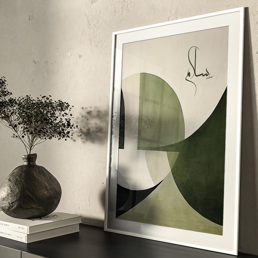 Diese sorgfältig kuratierte Design-Objekt ist weit entfernt von massenproduzierter Dekoration. Es ist ein Zeichen Ihrer Wertschätzung für hochwertige Kunst und eine Reflektion Ihrer eigenen kulturellen Identität. Der Salam سلام [peace] Poster ist nicht nur eine Augenweide, sondern auch eine Ermutigung zur inneren Ruhe und Zufriedenheit.