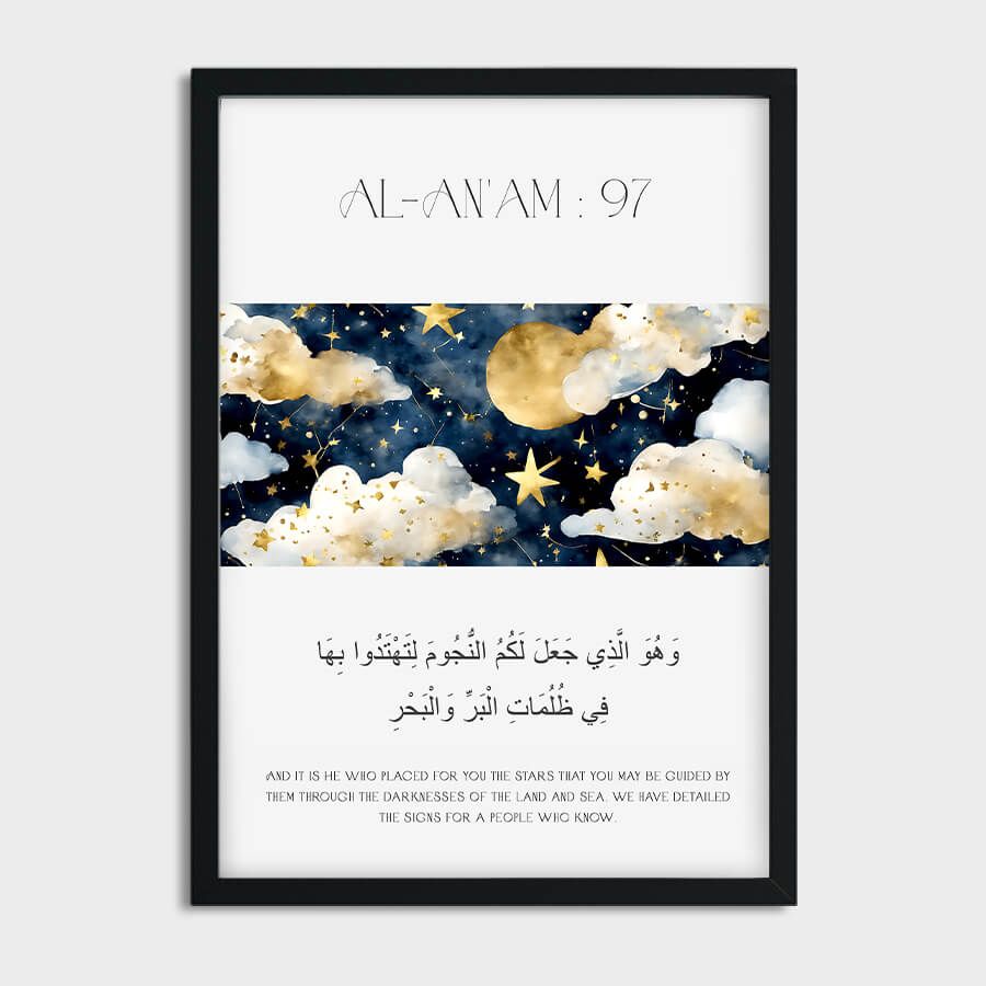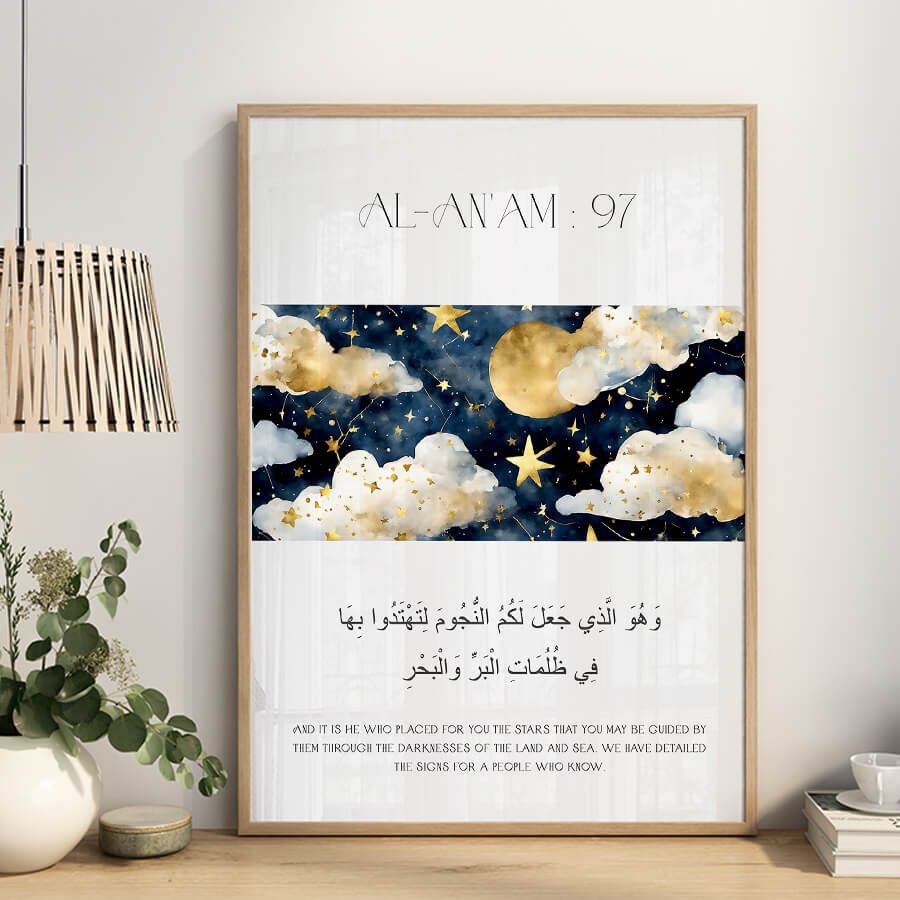Poster mit Qurʾan-Vers – Sure Al-An'am (Vers 97) | Sterne im Islam | Islamische Wandkunst