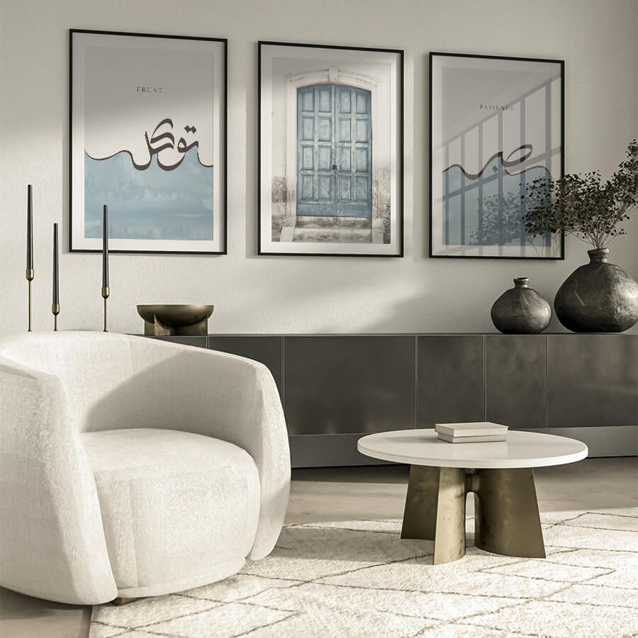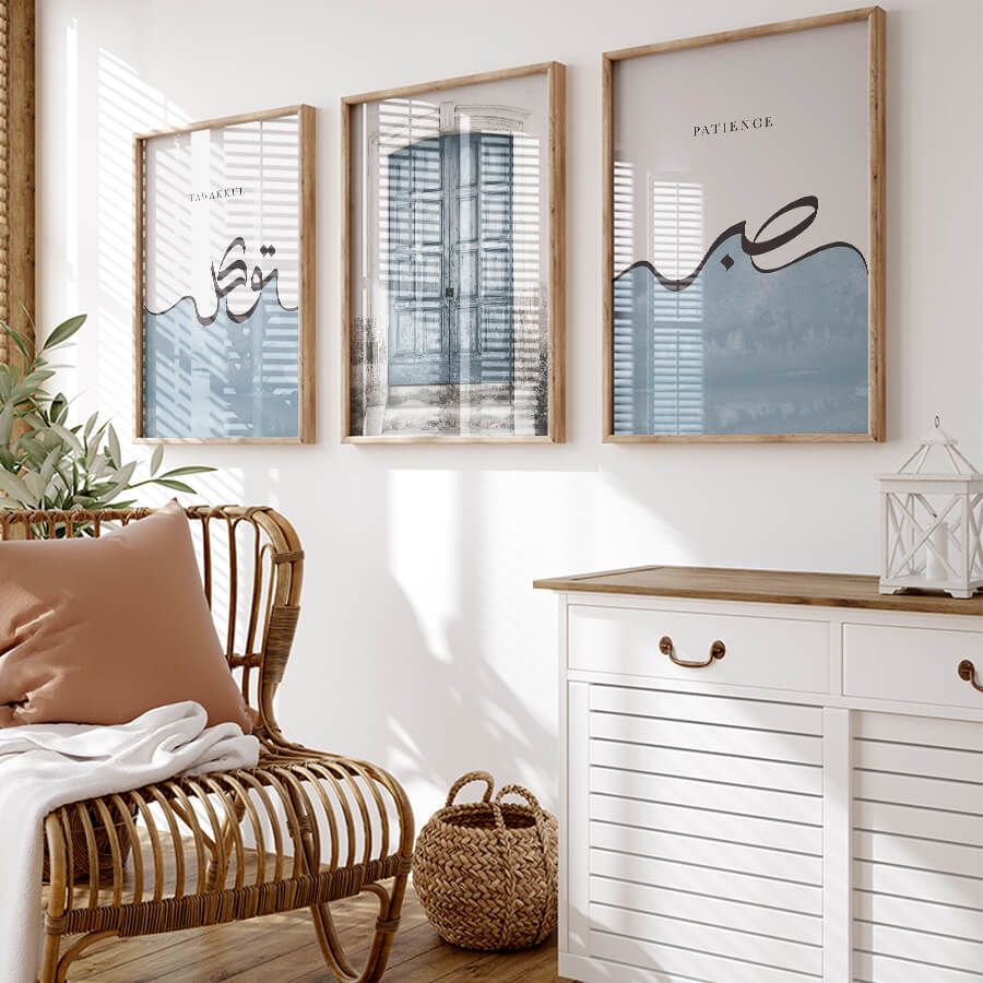 Verleihen Sie Ihren Wänden mit dieser Kollektion einen Hauch von Spiritualität und Stil, der weit über den üblichen Dekorationsstil hinausgeht. Lassen Sie das „Trust [Tawakkul توكل], Door, Patience [Sabr صبر] Poster Set“ Teil Ihres Lebensraums werden und genießen Sie die Harmonie zwischen ästhetischer Schönheit und tiefgründiger Bedeutung.