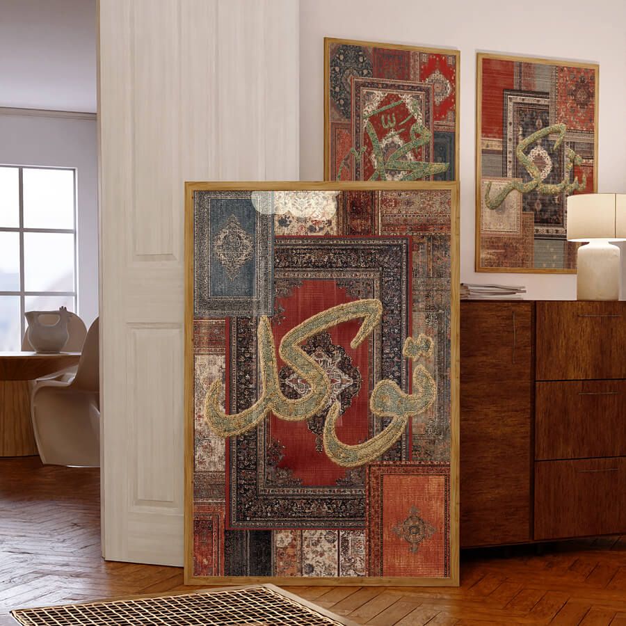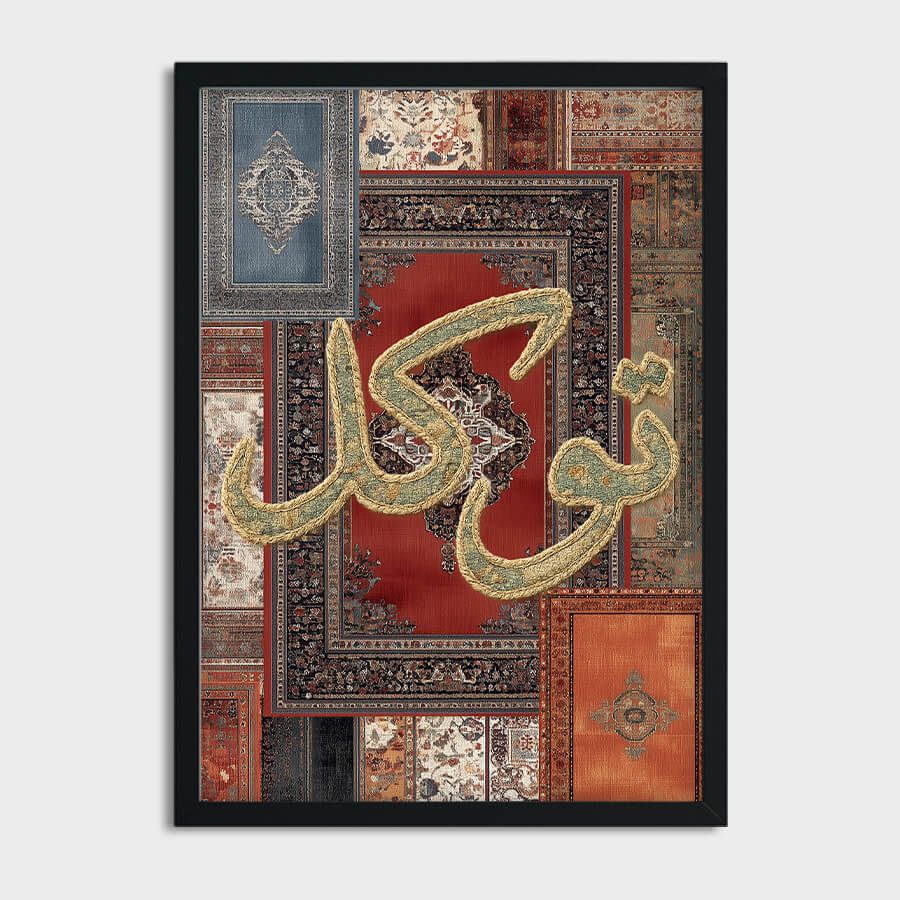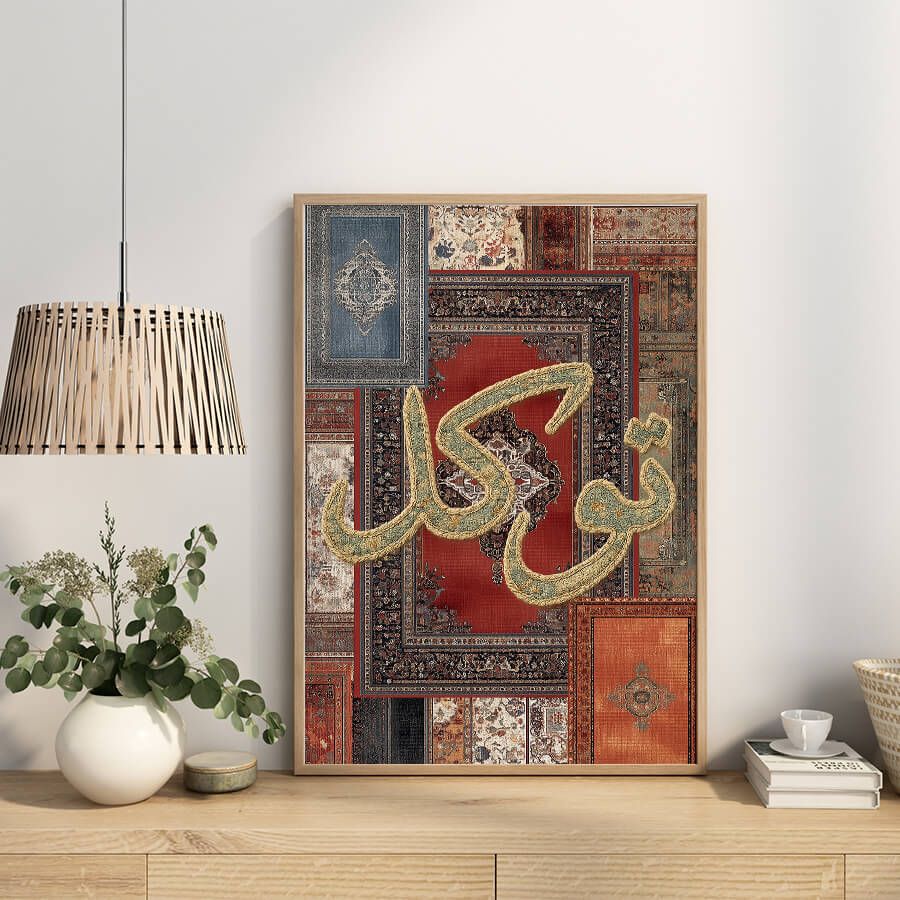 Tawakkul تَوَكُّل Poster – Arabische Kalligraphie im Orientteppich-Stil