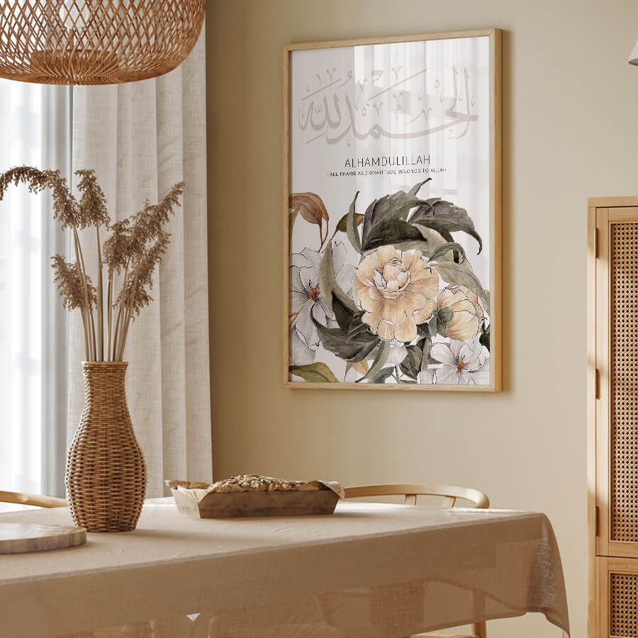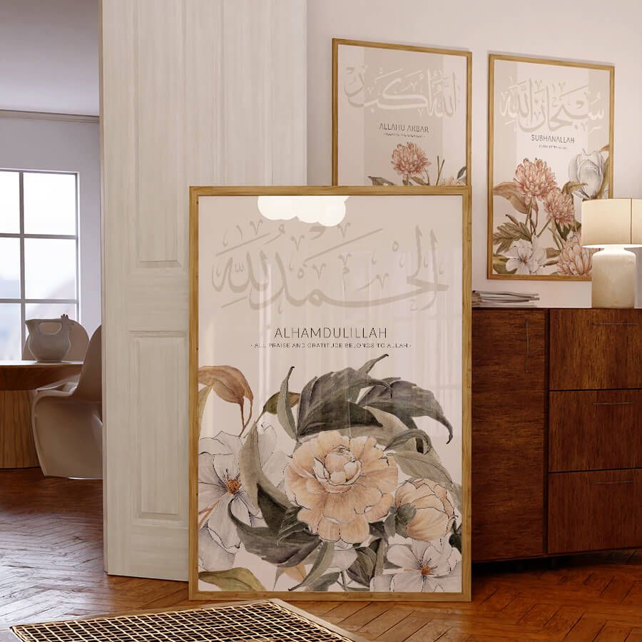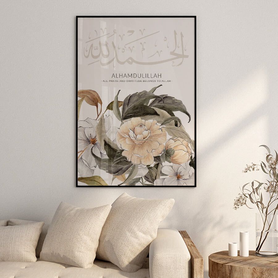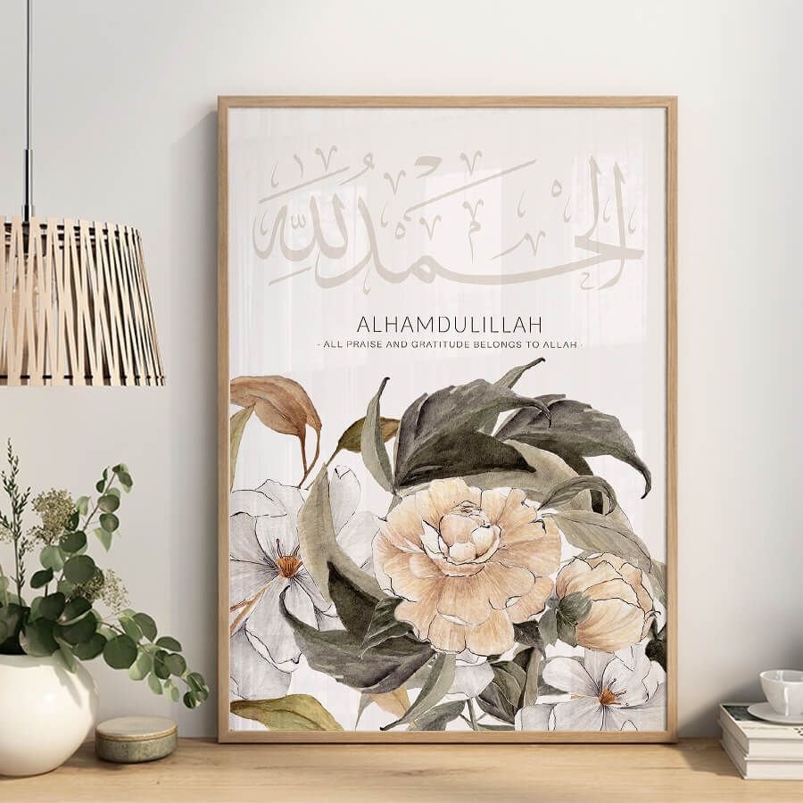 At the intersection of faith and artistry lies the Alhamdulillah Poster, a refined piece of Islamic wall art designed for those who appreciate the beauty of cultural expression. This exquisite work features the Arabic word "Alhamdulillah," which translates to "All praise is due to Allah." It serves as a gentle reminder of gratitude in our everyday lives.