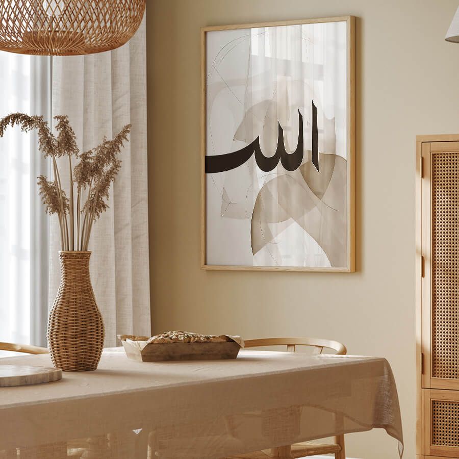 Allow this exquisite artwork to inspire a feeling of tranquility and mindfulness, subtly integrating the principles of Islam into your day-to-day life. With a careful balance of simplicity and sophistication, the Allah Poster invites reflection and offers a profound connection to your spirituality.