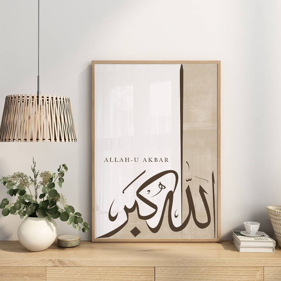 Experience the serene beauty of our Allah-u Akbar [الله أكبر] Poster, a refined piece of Islamic wall art that effortlessly merges spirituality with contemporary design. This elegant representation of the phrase “Allah-u Akbar,” meaning “God is the Greatest,” captures a profound essence of faith and devotion, inviting tranquility into your living space.