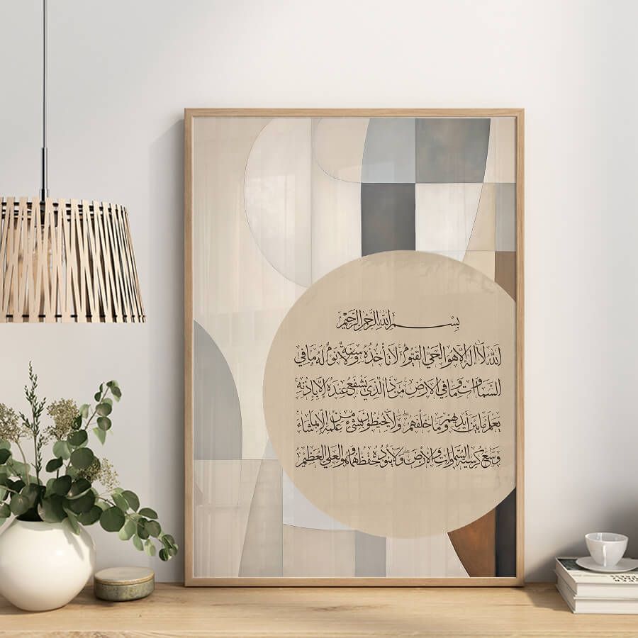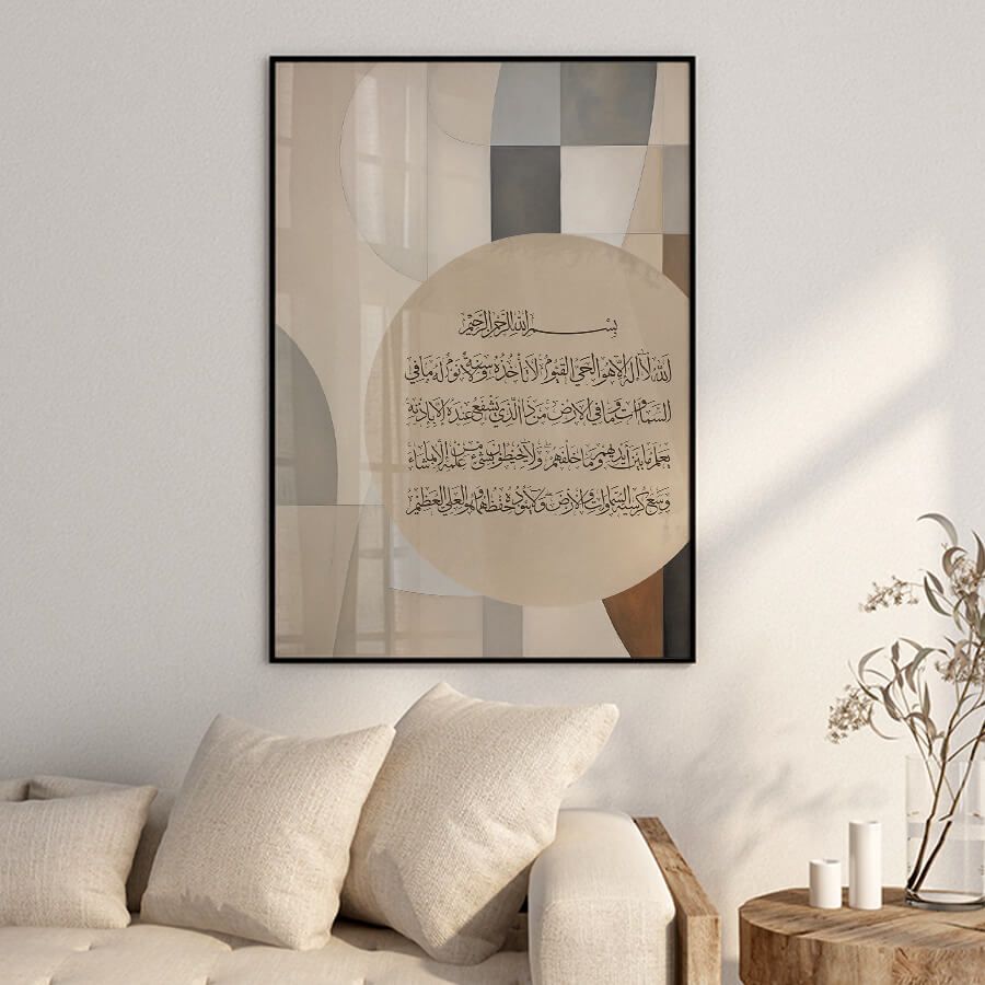 The Ayat Al Kursi, or the Throne Verse, is one of the most significant passages in the Quran, emphasizing the power and sovereignty of Allah. Enriched with intricate Arabic calligraphy, this art piece transcends mere decoration; it fosters an atmosphere of tranquility and introspection. It is perfect for design-conscious individuals seeking a meaningful addition to their home or office.