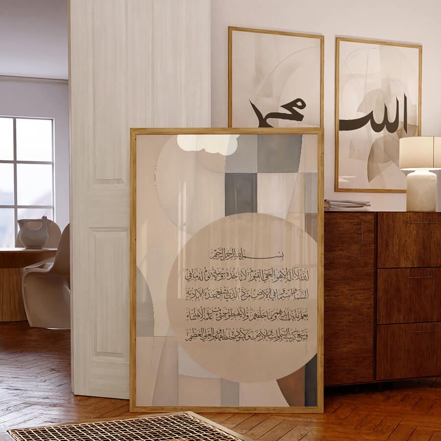 Introducing the Ayat Al Kursi Poster from at9pm, a beautifully curated piece of Islamic wall art that effortlessly combines spirituality and refined design. This elegant representation of the revered verse serves as a reminder of the profound meanings encapsulated within it, inviting peace and awareness into your living space.