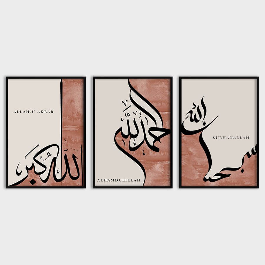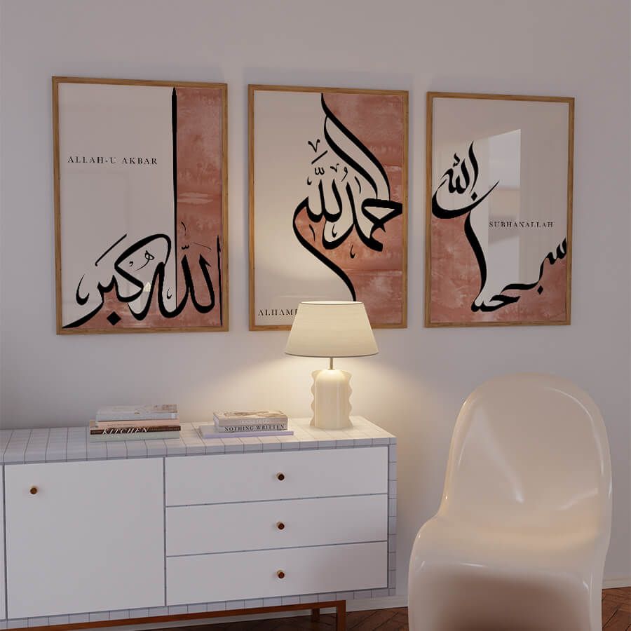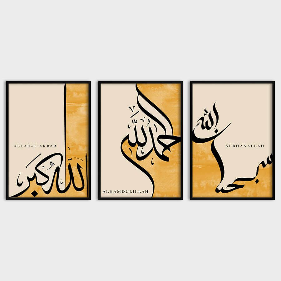 The trio of phrases—Subhanallah, Alhamdulillah, and Allahu Akbar—serves as a daily reminder of spiritual appreciation and connection. "Subhanallah," meaning "Glory be to Allah," invites a sense of awe and reverence. "Alhamdulillah," translating to "All praise is due to Allah," expresses gratitude for life's blessings. Lastly, "Allahu Akbar," or "Allah is the Greatest," evokes strength and perspective in times of reflection.