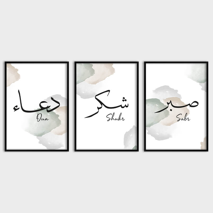 Dua [دعاء] Shukr [شكر] Sabr [صبر] Poster Set