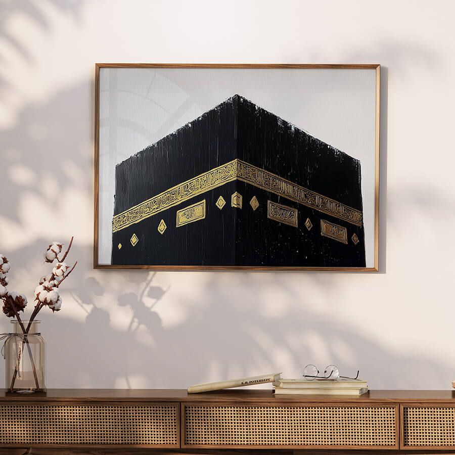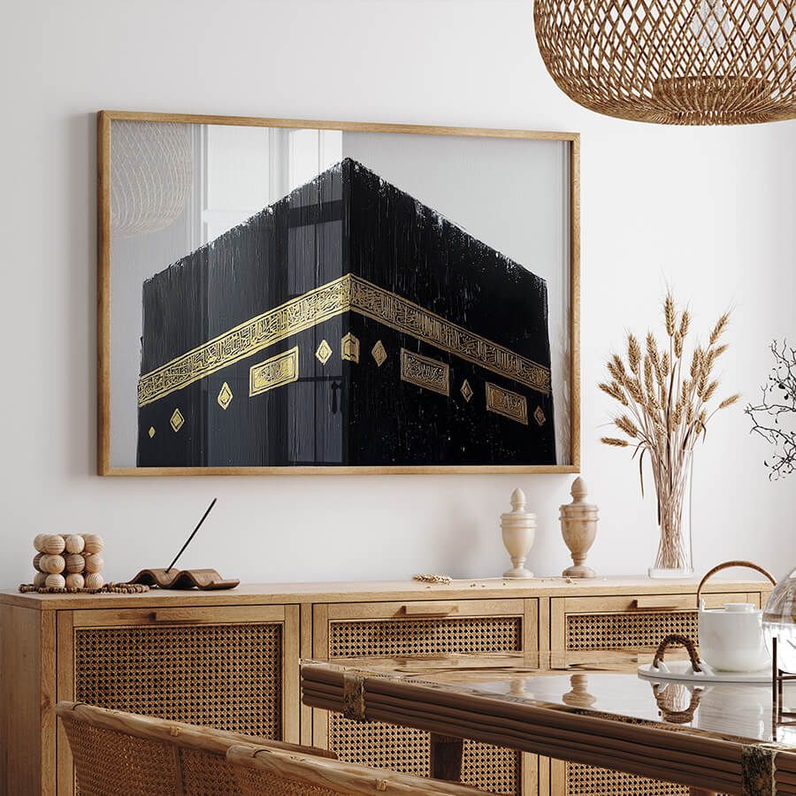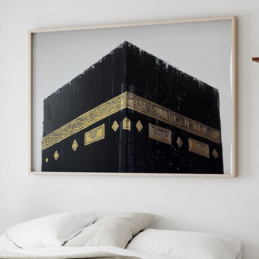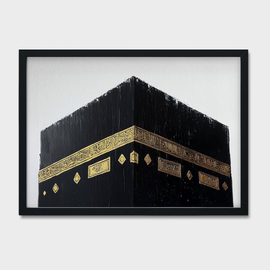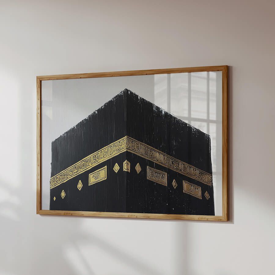 The Kaaba, a sacred site located in Mecca, is the focal point of millions of hearts. It symbolizes unity, devotion, and peace. This poster invites viewers to reflect on the profound beauty and architectural significance of this revered structure, encouraging a meditative state that resonates deeply with its audience.