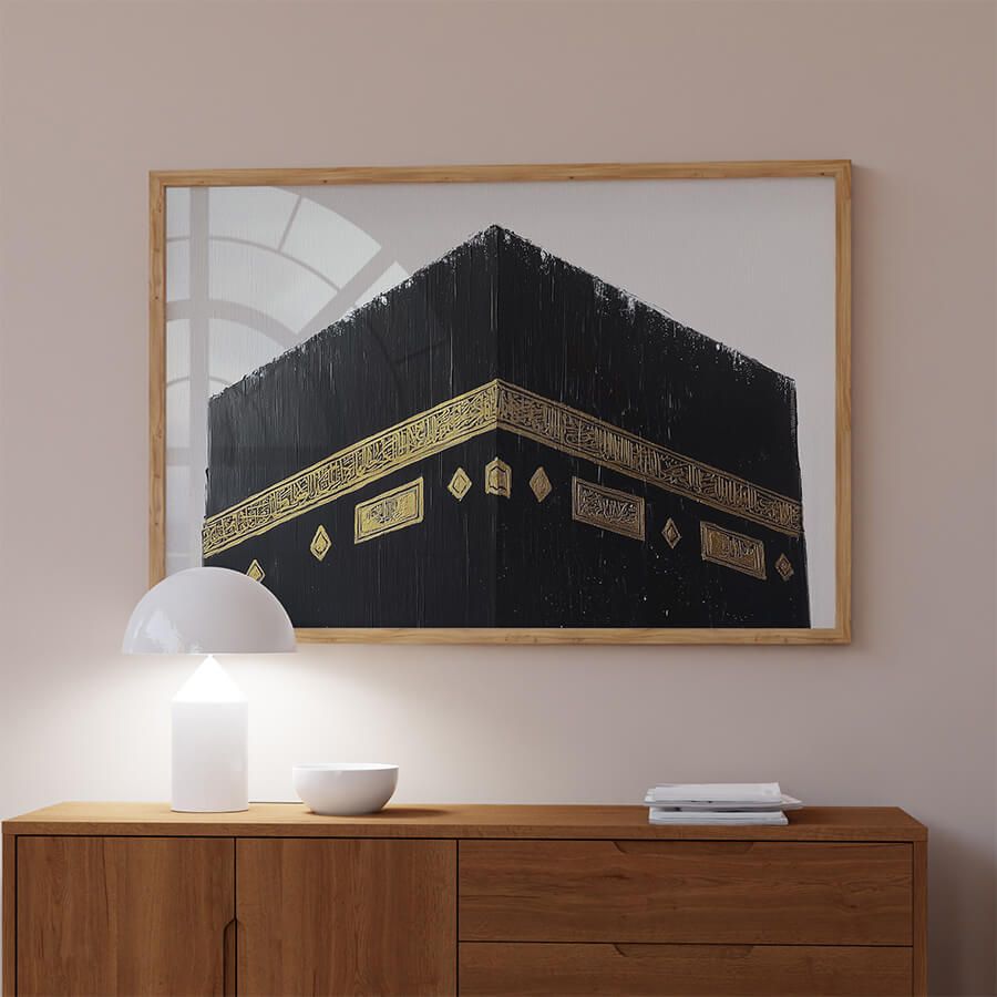 Perfect for a tranquil living space or a contemplative study, the Abstract Kaaba Poster serves as a curated design object, adding a touch of sophistication to any environment. Its calming color palette and minimalist form create a serene atmosphere, making it a thoughtful addition for those seeking to harmonize their surroundings with cultural and spiritual significance.