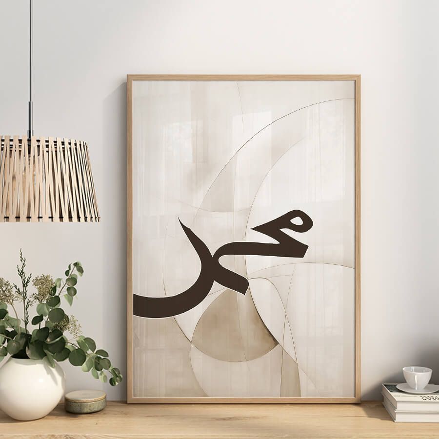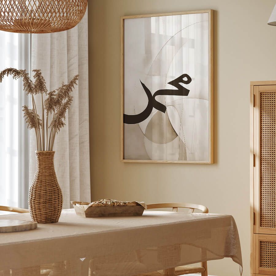 Featuring elegant Arabic calligraphy, the poster beautifully captures the essence of the Prophet Muhammad, embodying values of compassion, wisdom, and guidance. Each stroke of the calligraphy resonates with historical significance, inviting contemplation and reflection, making it a cherished addition to any environment.
