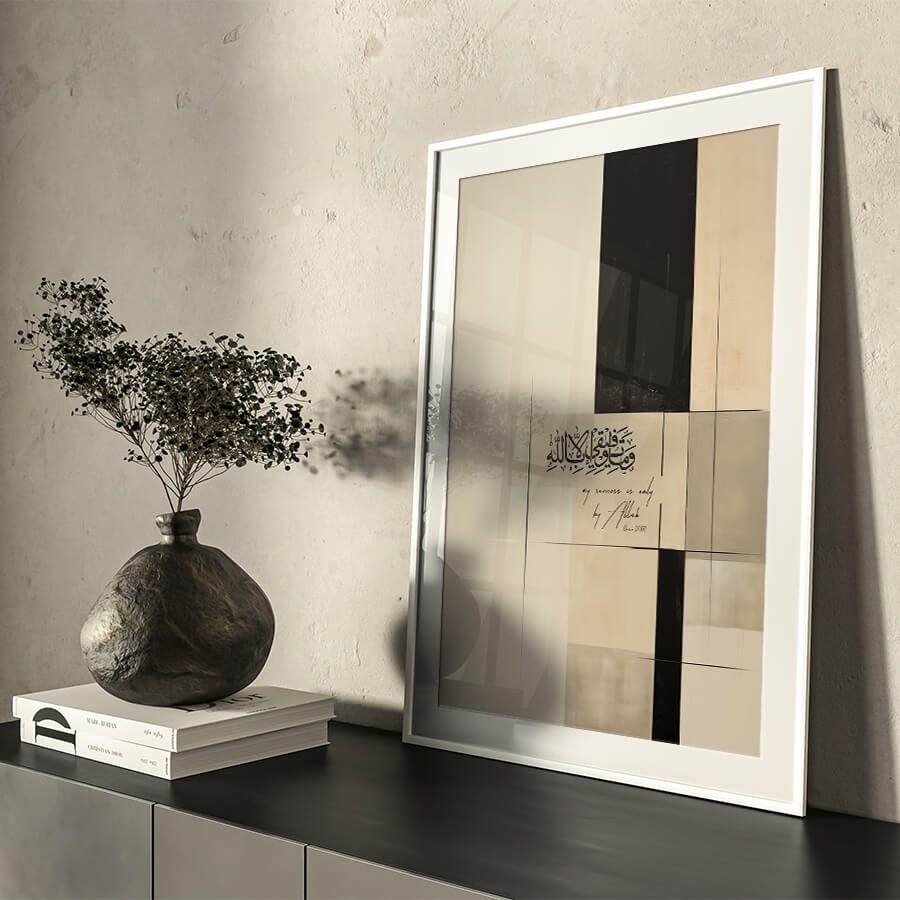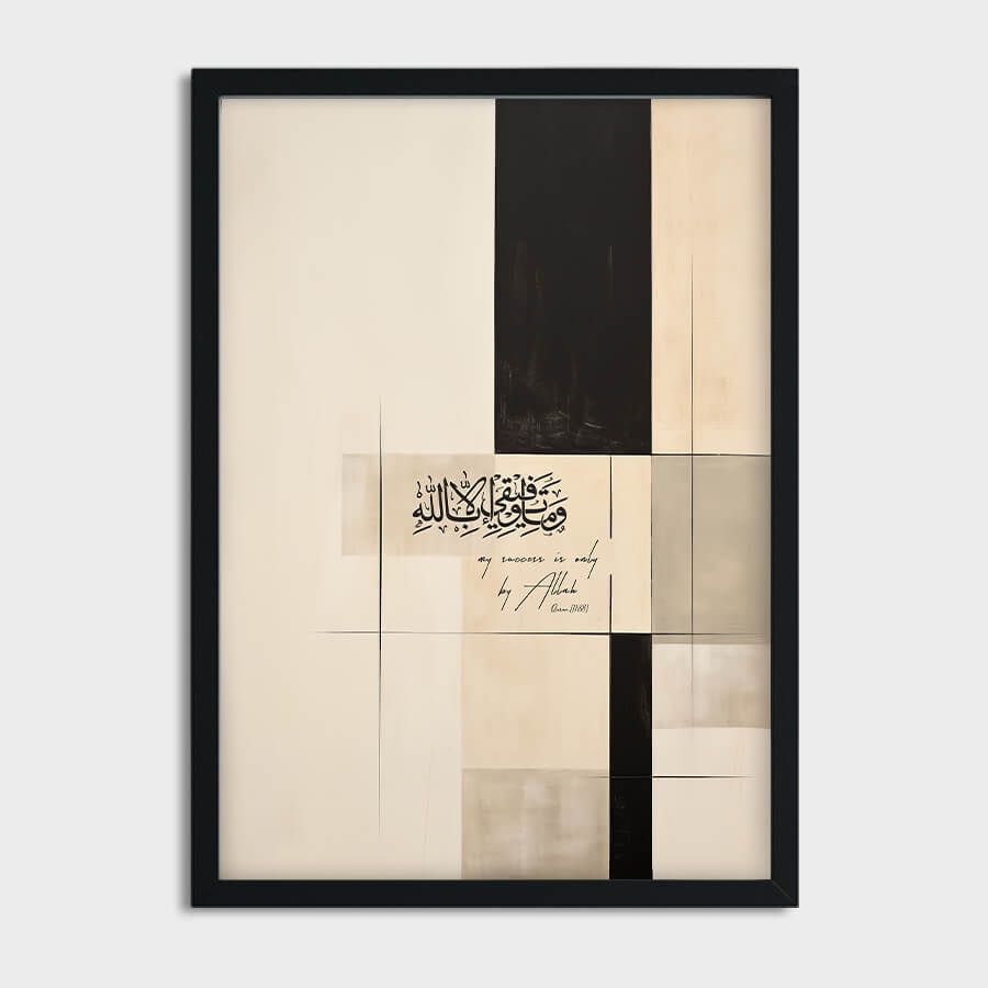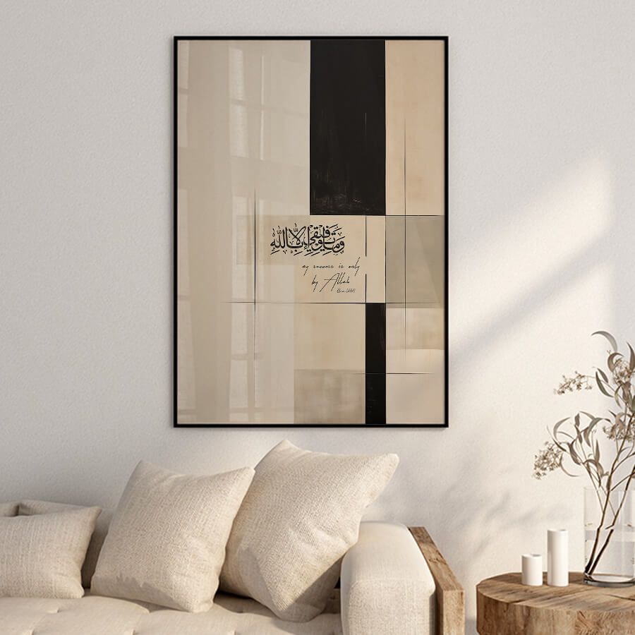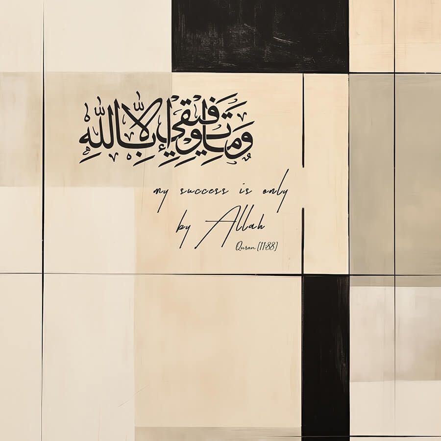 Embrace the serene essence of faith with the "My Success is only by Allah [11:88]" poster, a distinguished piece of Islamic wall art that transcends simple decoration. This elegantly designed art piece serves as a daily reminder of the divine guidance and support in every endeavor.
