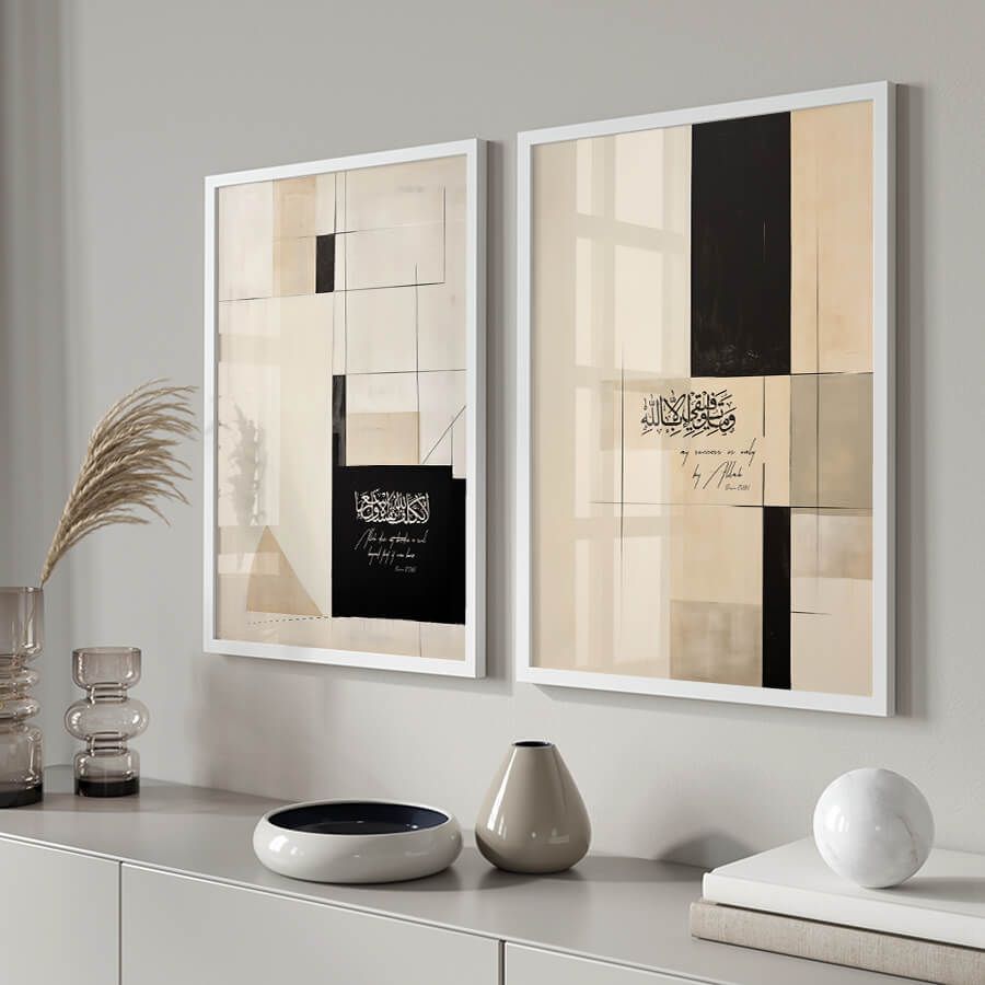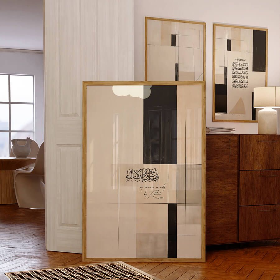Incorporating Arabic calligraphy, this poster beautifully articulates the profound message of reliance on Allah. The phrase, drawn from the teachings of the Quran, symbolizes a deep understanding that true success is intertwined with faith and devotion. The lyrical beauty of the Arabic script invites contemplation and offers a calming presence to any space.