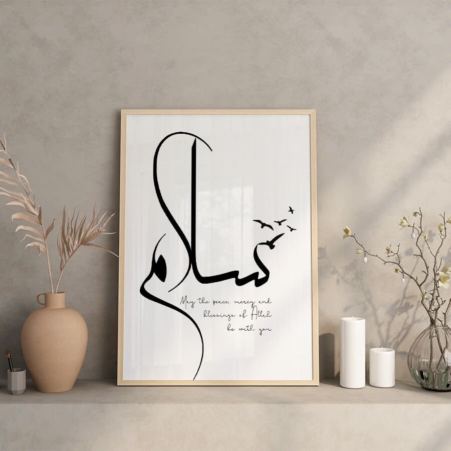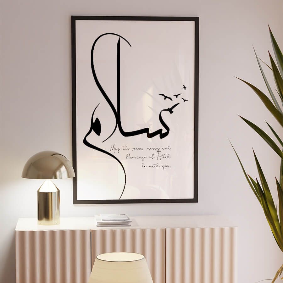 The word “سلام” (Salam) translates to "peace" in Arabic, signifying a state of harmony and safety. This beautifully rendered Arabic calligraphy not only decorates your walls but also instills a sense of calm in your environment. Every stroke is crafted with intention, blending art with meaningful cultural significance.
