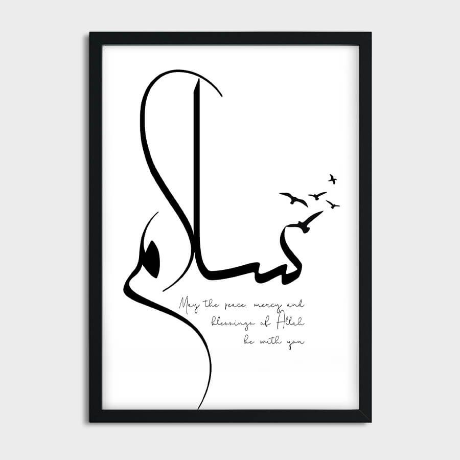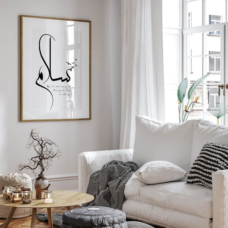 Elevate your living space with the Peace [سلام Salam] Poster, a striking piece of Islamic wall art that embodies serenity and tranquility. Designed for those who appreciate refined aesthetics, this artwork serves as a daily reminder of the gentle essence of peace in our lives.