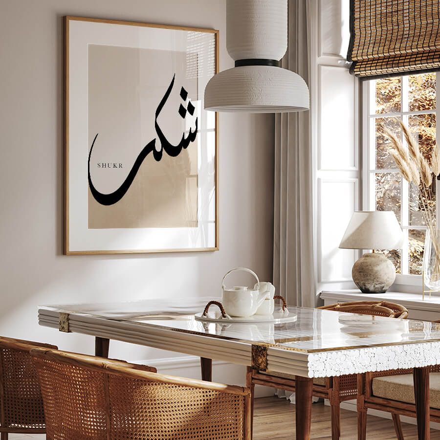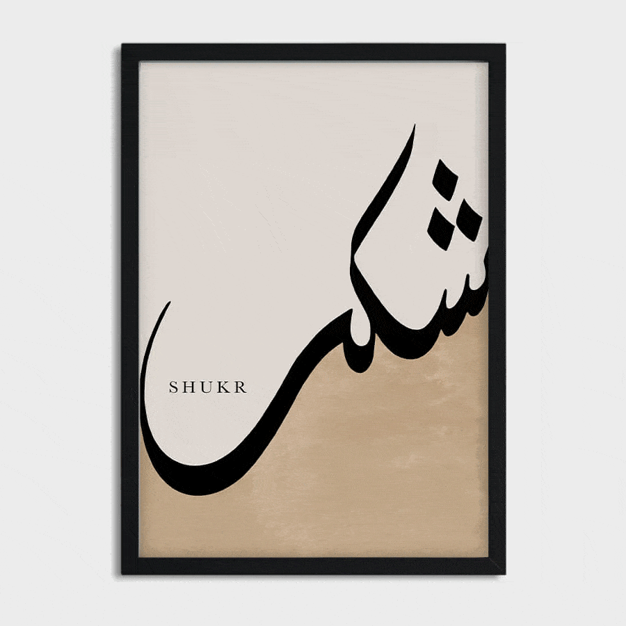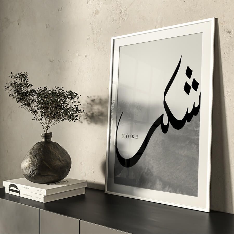 Positioned as a curated design object, the Shukr شكر [Gratitude] Poster resonates with those who appreciate art that speaks to the heart and soul. It is not merely a decoration but a statement of values and a celebration of cultural depth, making it a perfect addition to a home, office, or dedicated prayer space.