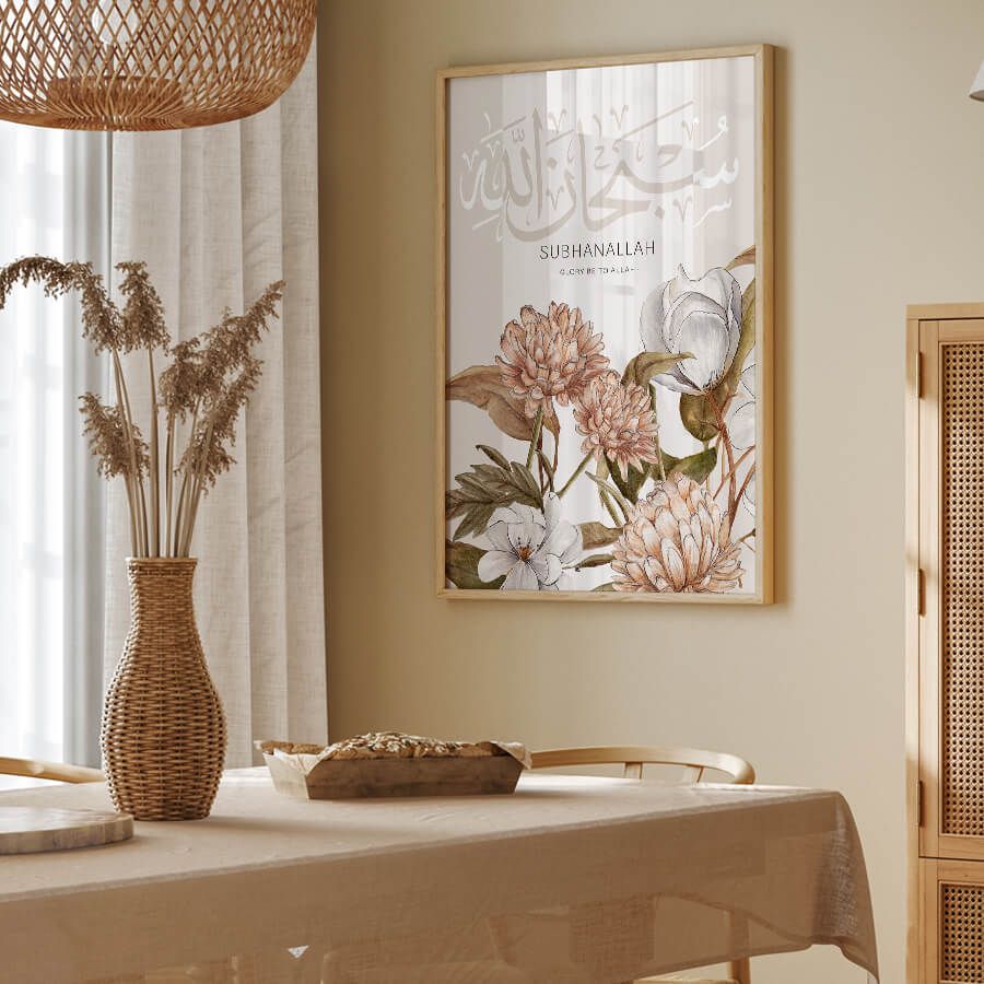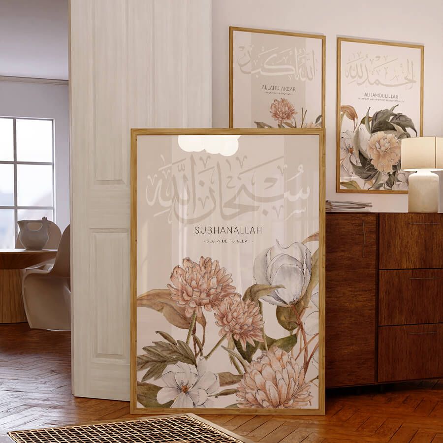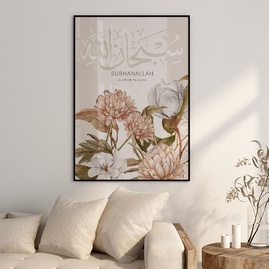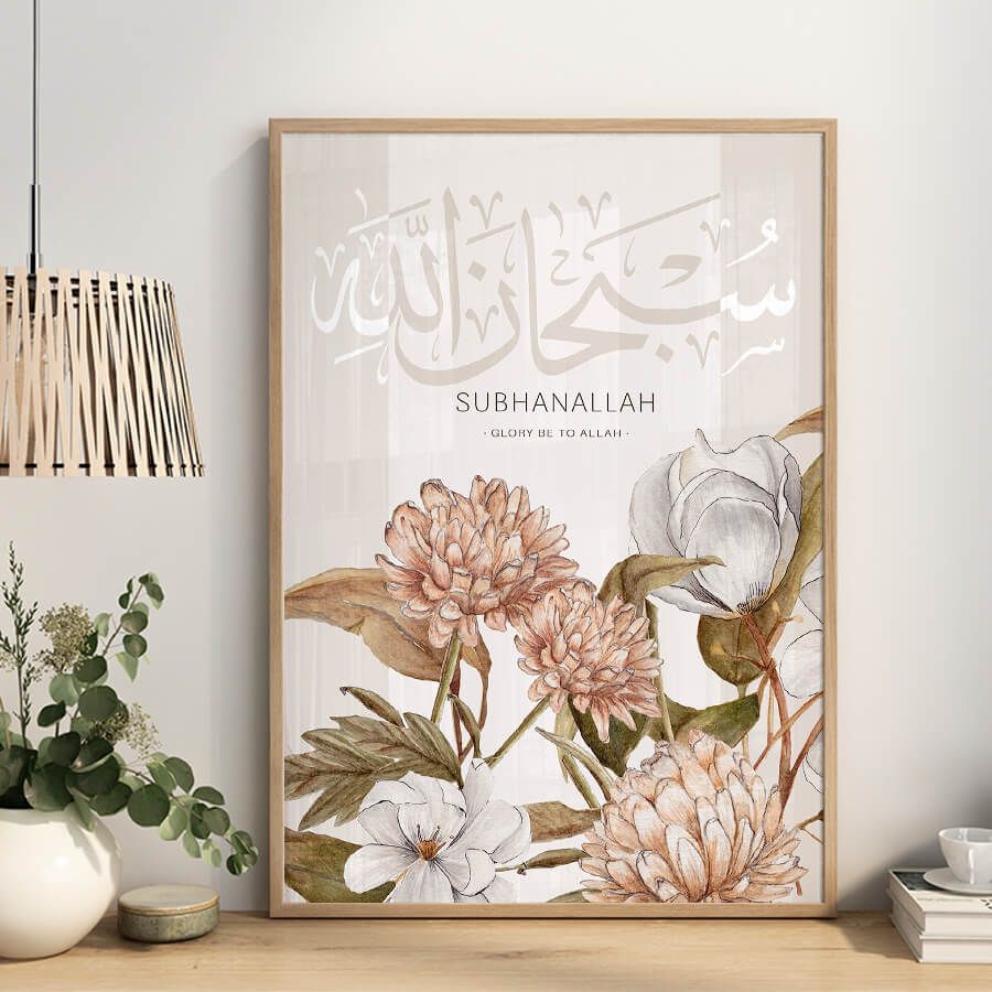 This art piece draws the gaze and invites reflection, making it perfect for thoughtfully designed spaces where tranquility reigns. The delicate interplay of form and meaning encourages a sense of peace and an appreciation for spiritual beauty in everyday life. Whether gracing a living room, study, or prayer nook, the Subhanallah Poster stands as a testament to your discerning taste and cultural awareness.