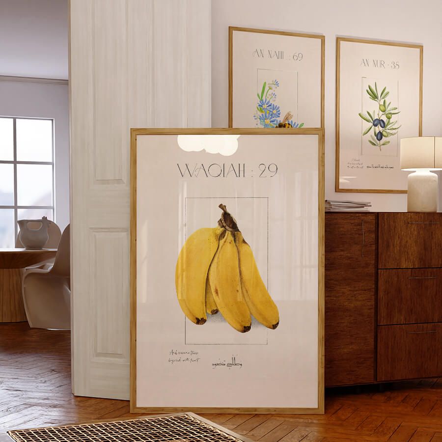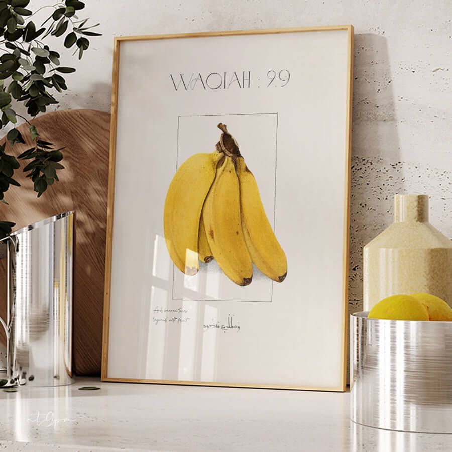 Quran Verse Poster – Surah Al-Waqi'ah (Verse 29) | Meaningful Symbols: Banana Trees | Islamic Wall Art