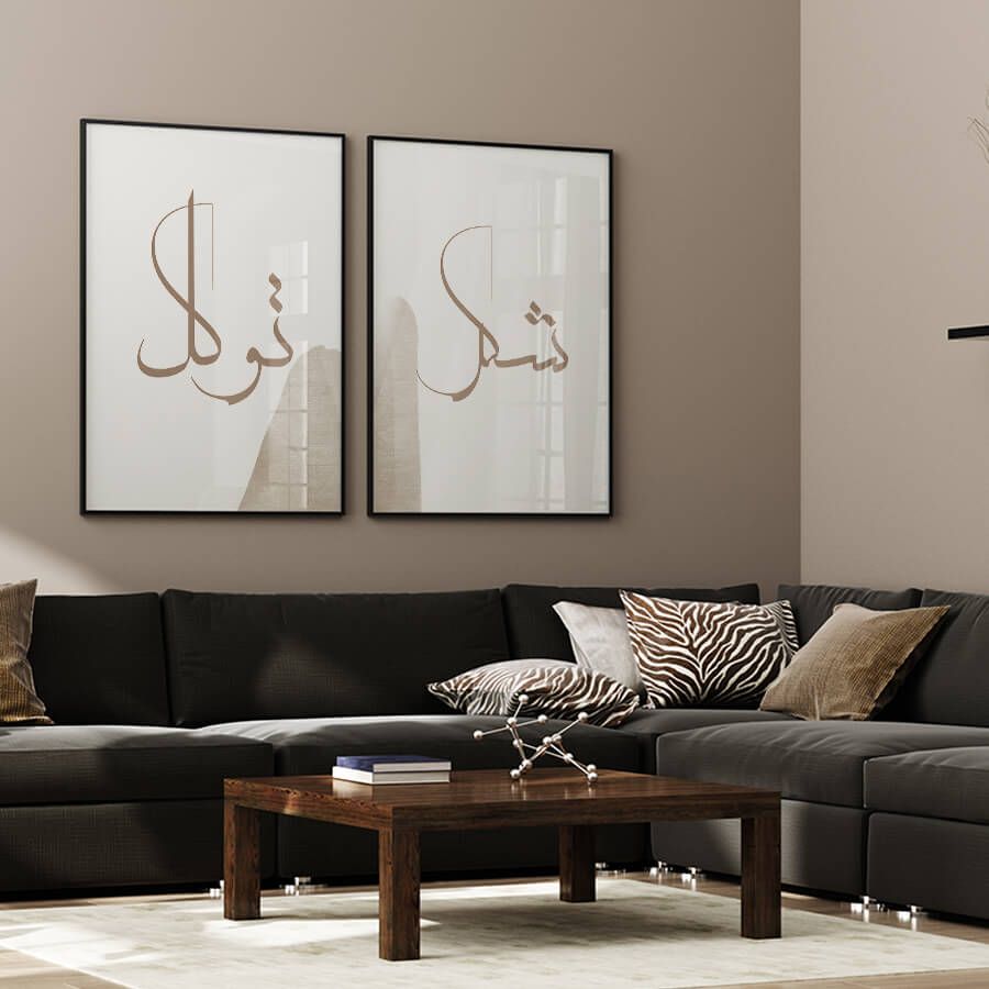 Introducing the Tawakkul and Shukr Poster Set from at9pm, a collection that elegantly weaves spiritual significance with refined design. This curated set captures timeless Arabic calligraphy, bringing a sense of serenity and inspiration to your living space.