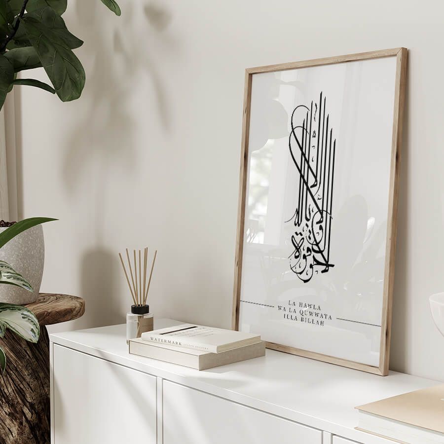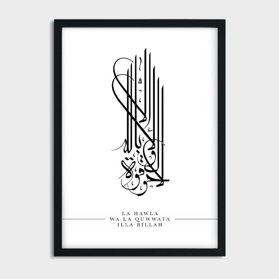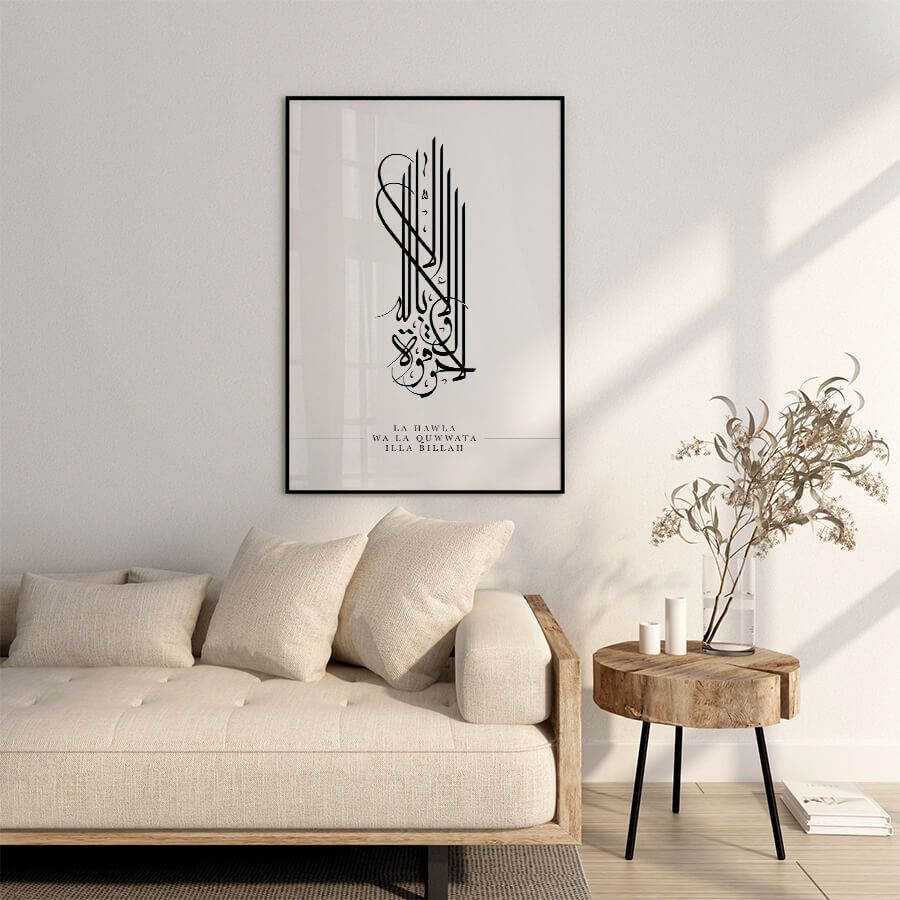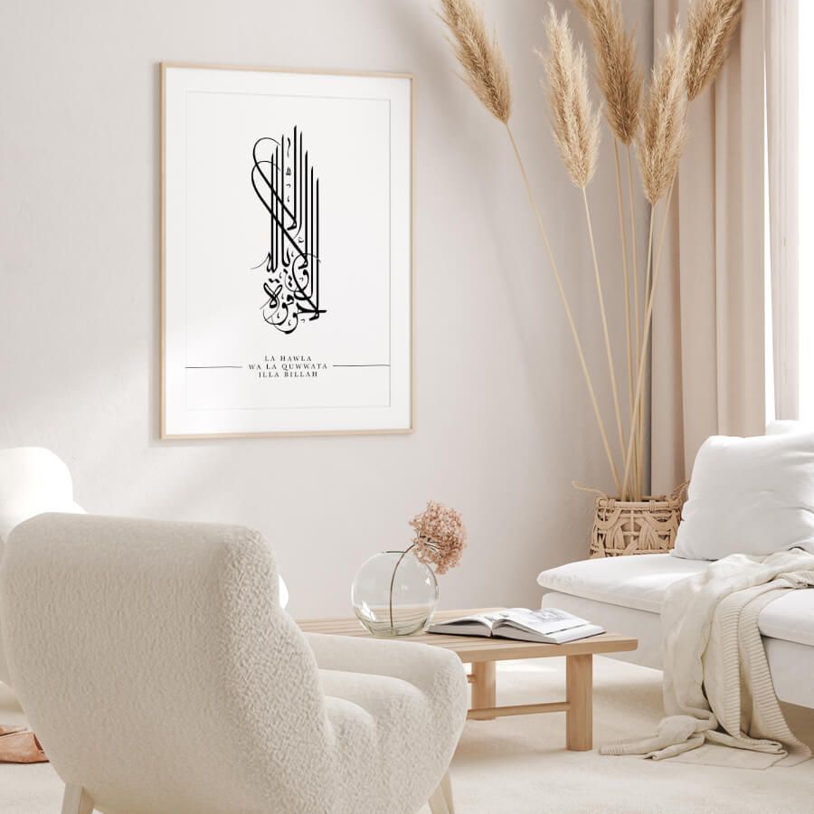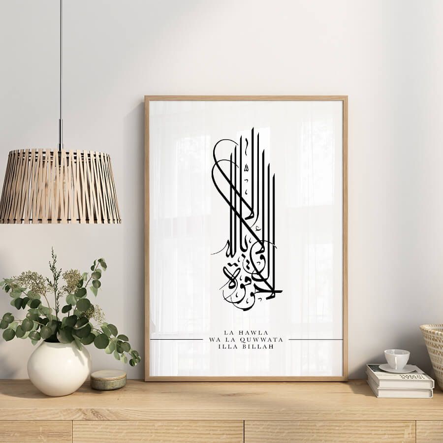 Le terme "La Hawla Wa La Quwwata Illa Billah" se traduit par "Il n'y a de force ni de pouvoir qu'en Dieu". Cette phrase puissante rappelle l'importance de la foi dans les moments de défi. En intégrant cette citation dans votre espace de vie, vous invitez une atmosphère apaisante et une connexion profonde avec votre spiritualité.
