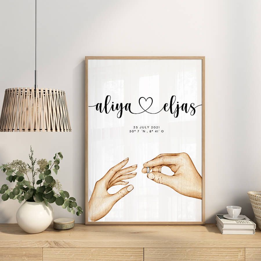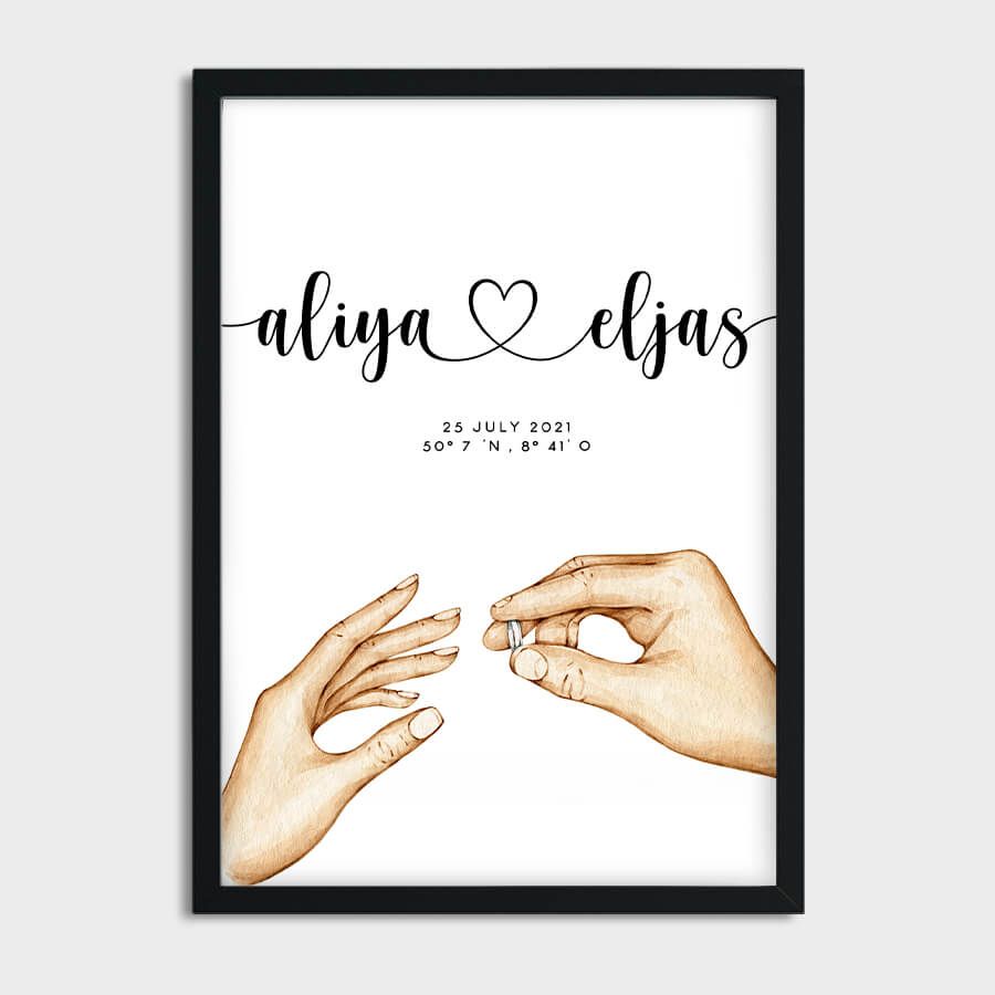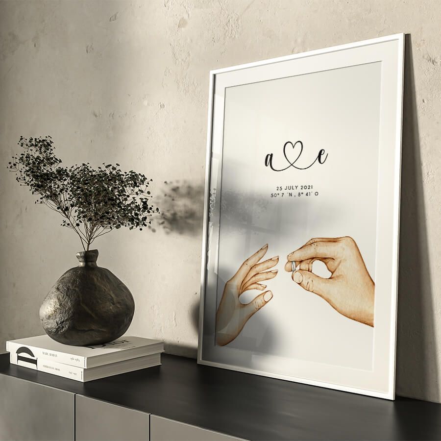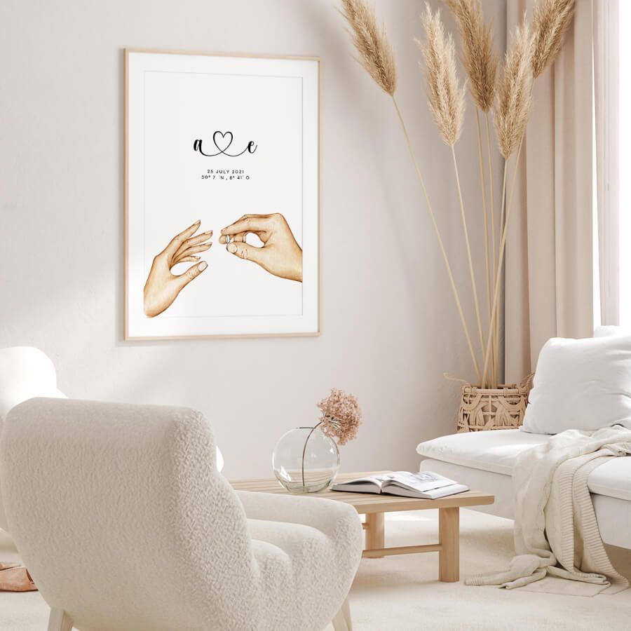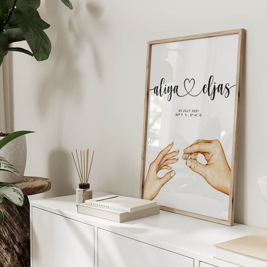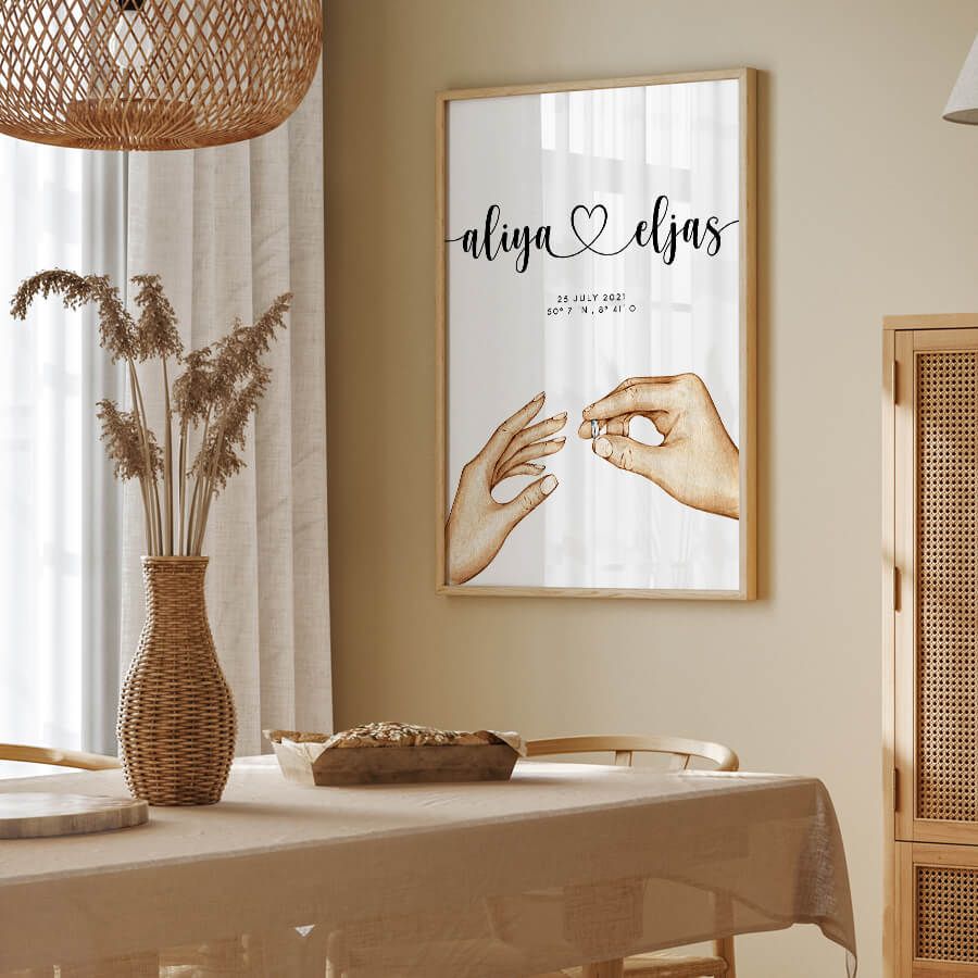 Ce poster sur mesure vous permet d’ajouter vos propres noms, dates ou textes, créant ainsi une représentation exclusive de votre partenariat. Chaque détail est pensé pour célébrer les moments partagés et l'intimité qui vous lie. Imaginez un espace où vos souvenirs prennent vie, encadrés par un design élégant qui fait résonner l'importance de l’appartenance et de la union.