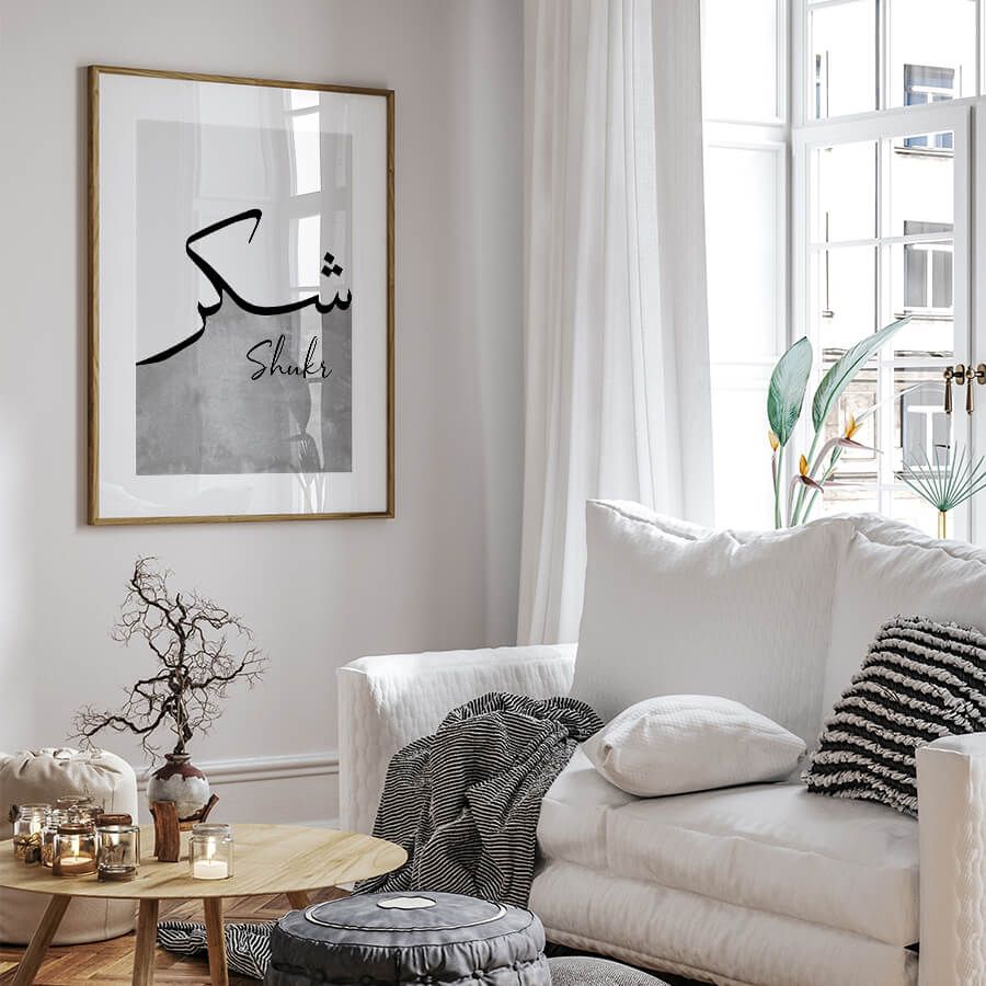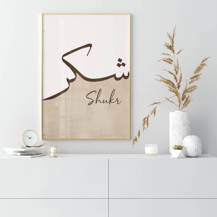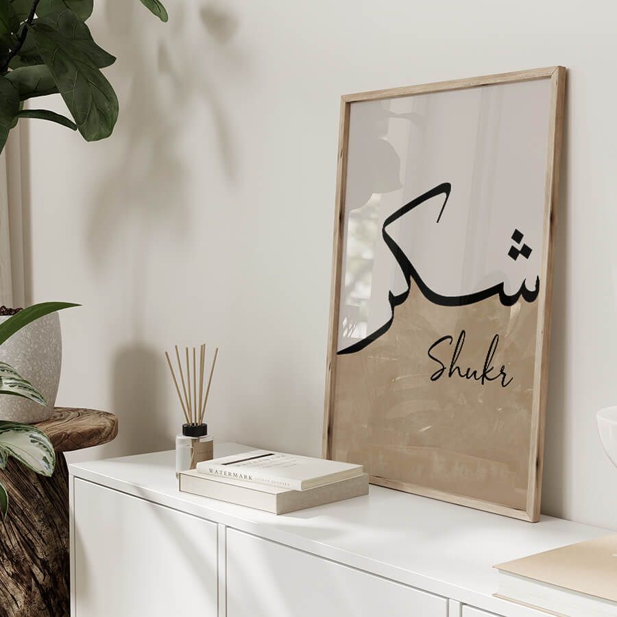 Conçue pour ceux qui apprécient l’esthétique soignée et l’art significatif, l'affiche Shukr s'inscrit parfaitement dans un cadre de vie moderne tout en respectant les traditions culturelles. C'est un objet de design soigneusement élaboré, bien loin des décorations de masse, permettant à chaque regard de se poser avec admiration sur sa beauté subtil.
