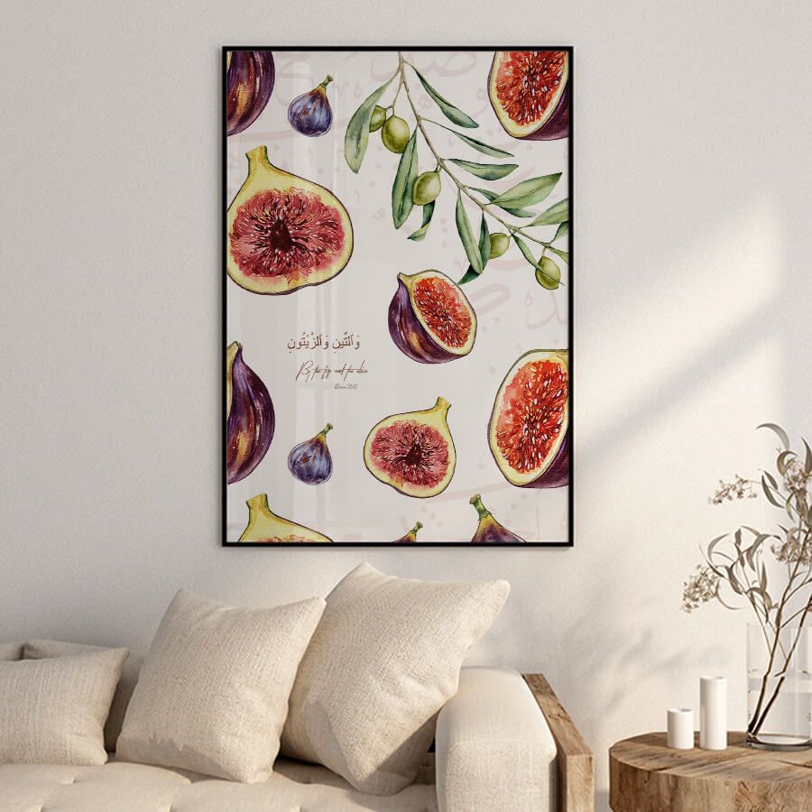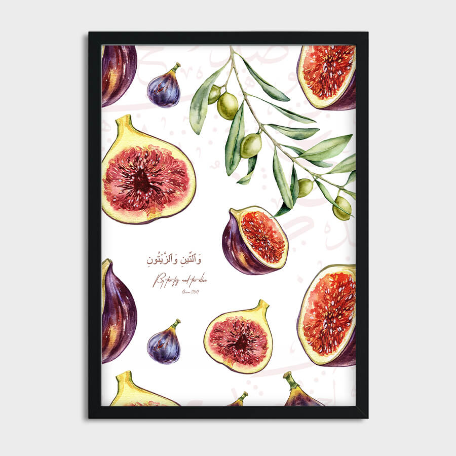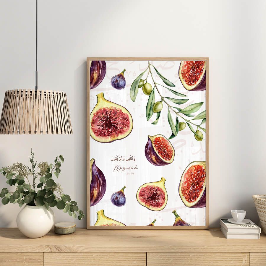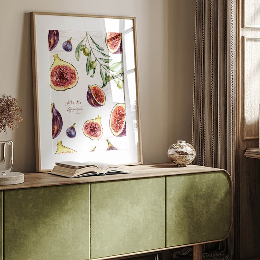 Affiche verset du Coran – Sourate At-Tin (verset 1) | Figue et olive, symboles du Coran | Art mural islamique