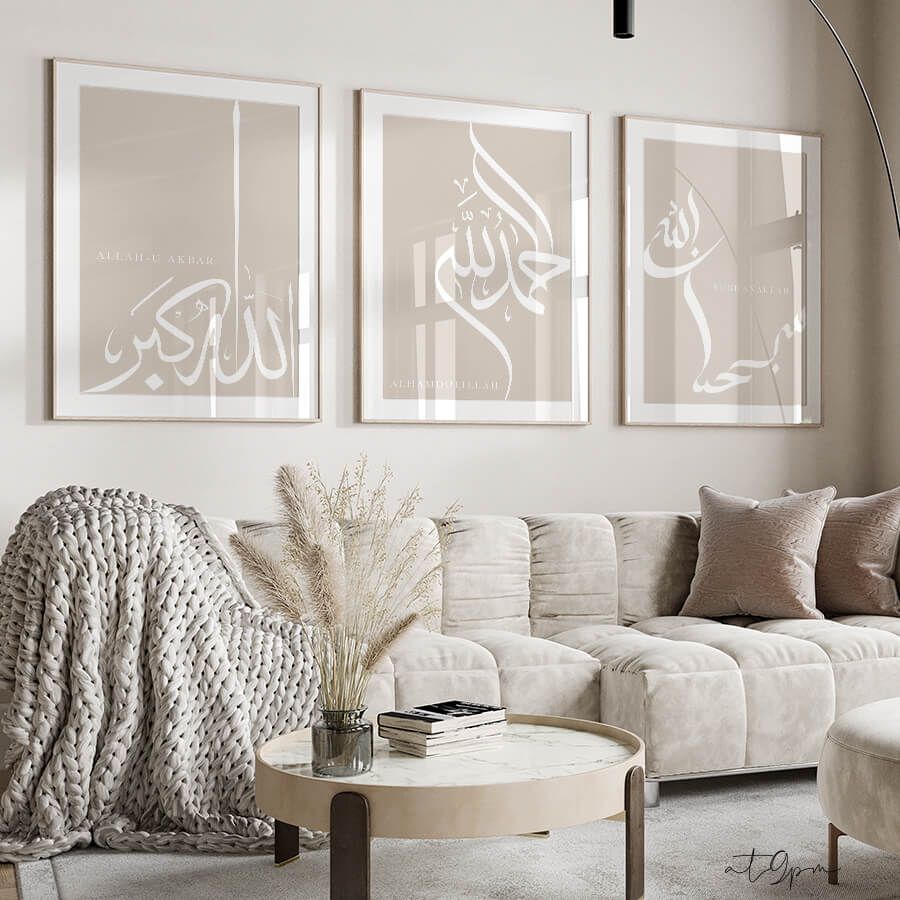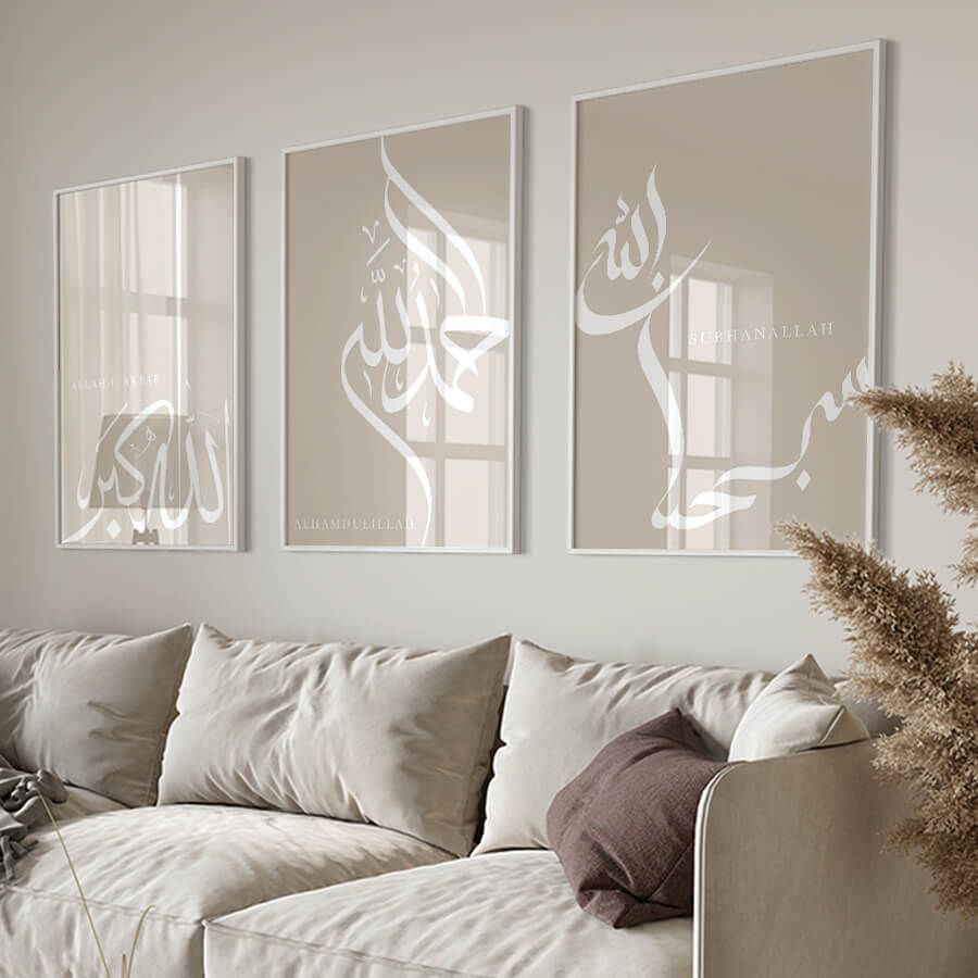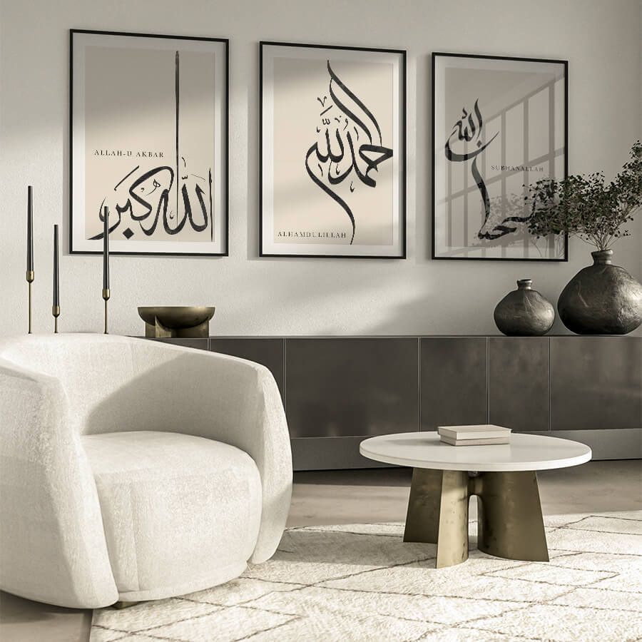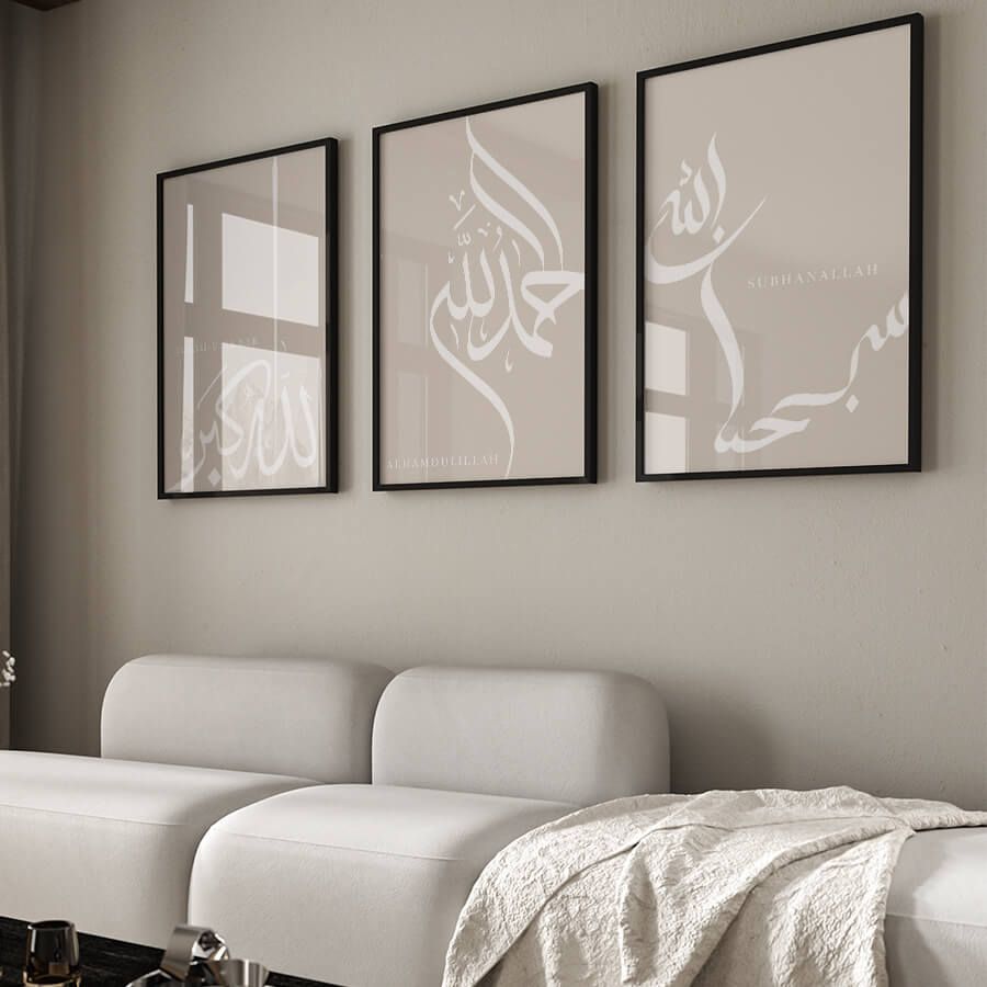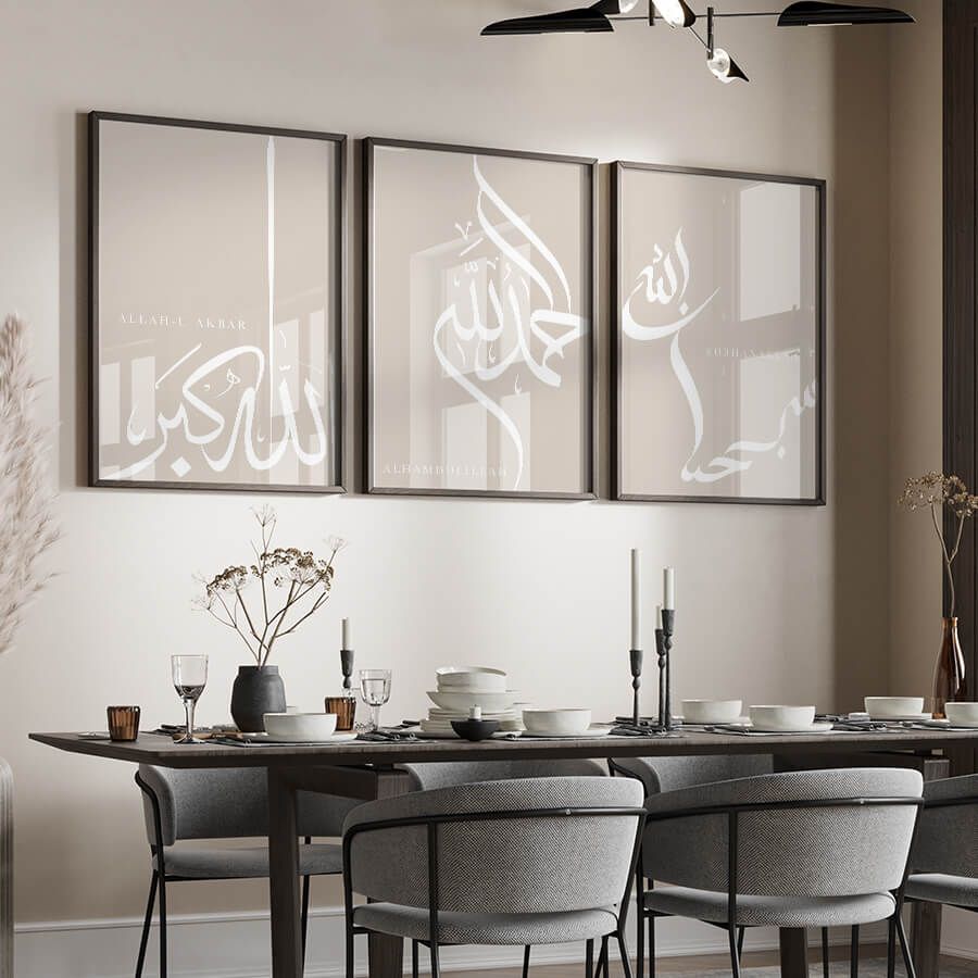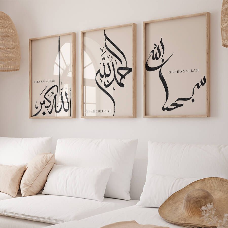 Découvrez l'élégance discrète de notre ensemble de posters Dhikr, conçu pour enrichir votre espace avec une touche de spiritualité. Chacune de ces œuvres, imprégnée de signification, s'épanouit dans un design raffiné qui parle à ceux qui apprécient la beauté de l'art islamique et la calligraphie arabe.